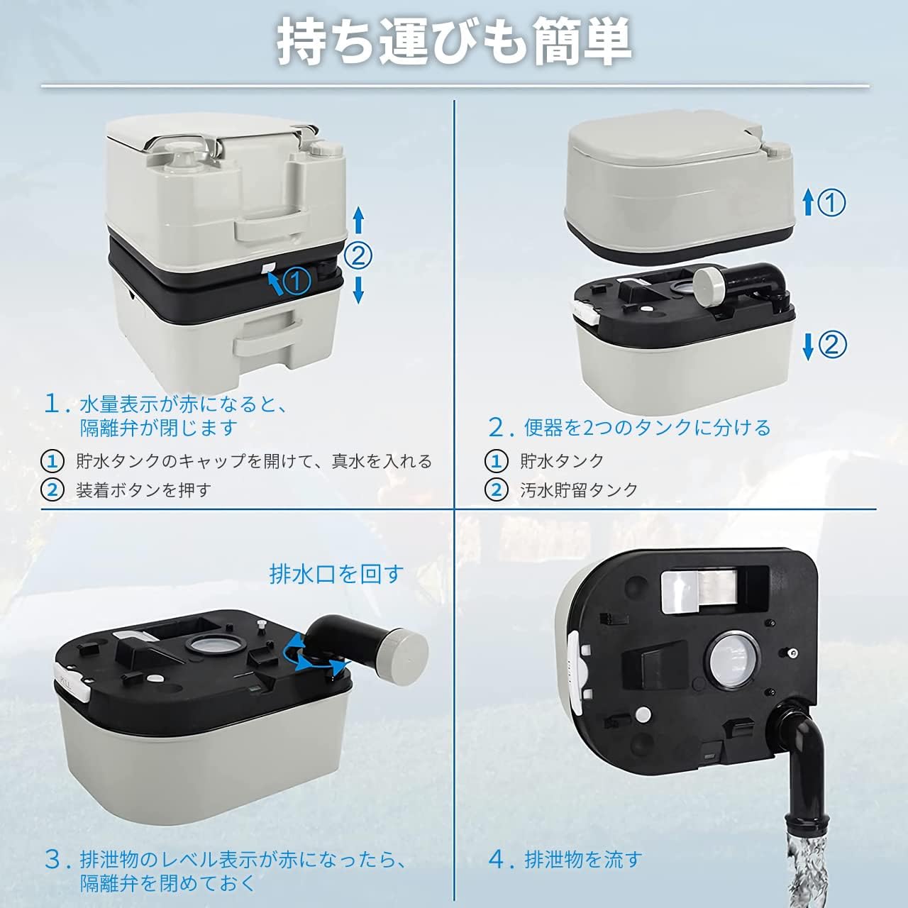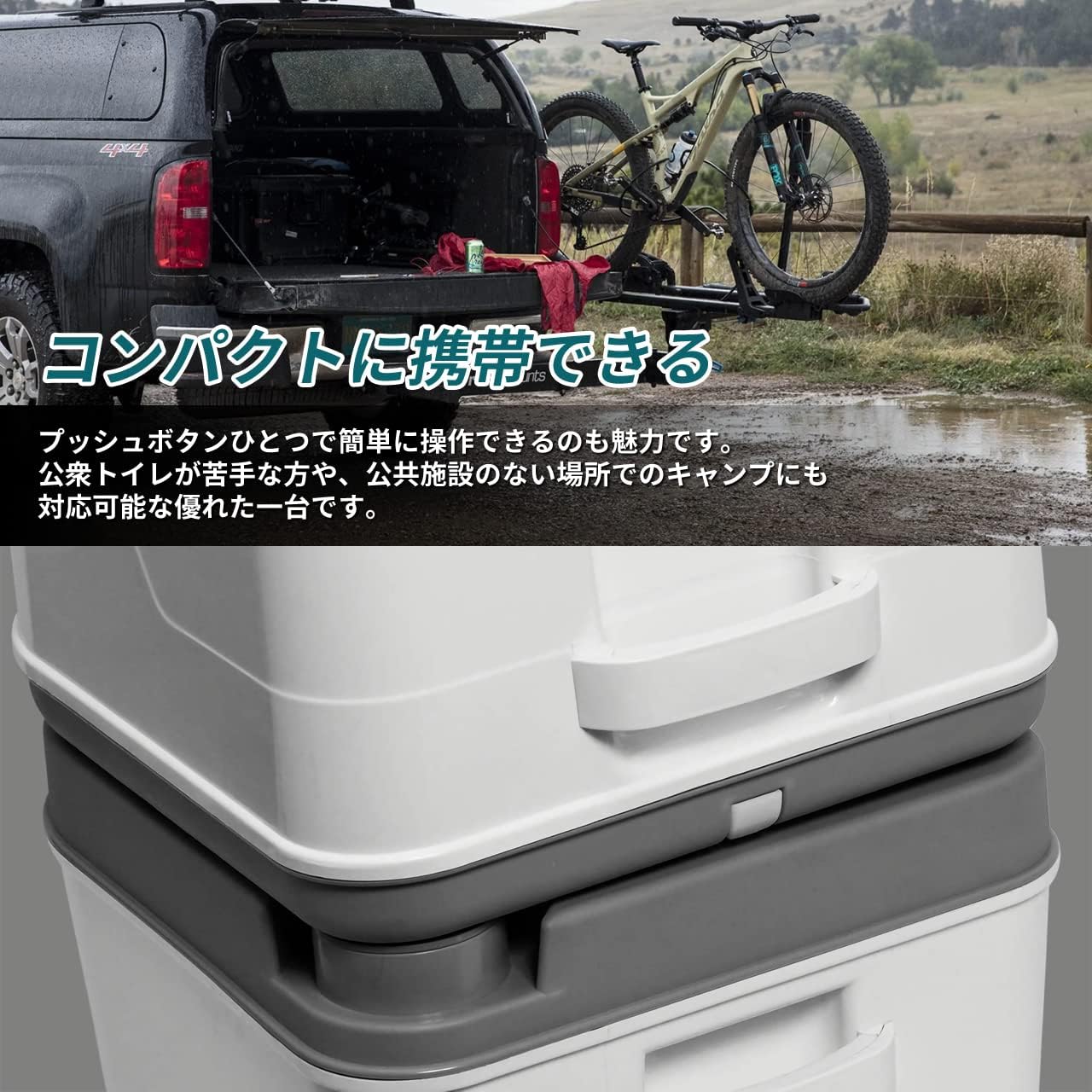 プッシュボタンひとつで簡単に操作できるのも魅力です。公衆トイレが苦手な方や、公共施設のない場所でのキャンプにも対応可能な優れた一台です。