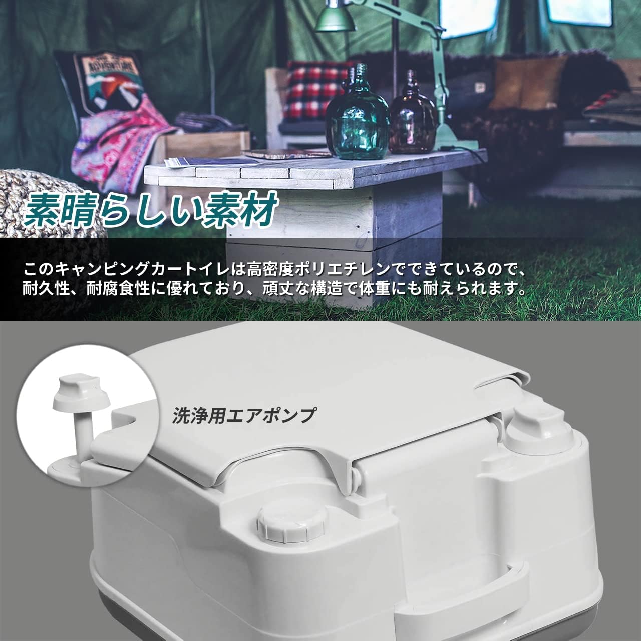 このキャンピングカー用トイレは、高密度ポリエチレンでできているので、耐久性、耐腐食性に優れており、頑丈な構造で体重にも耐えられます。