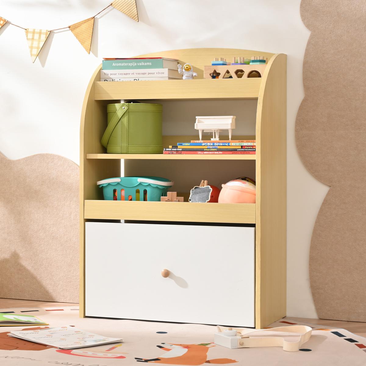 絵本ラック 絵本棚 本棚 収納ラック 多機能 おもちゃ収納 収納ボックス 子供部屋 収納ケース 子ども用 家具 木製 キッズ Natural MDF