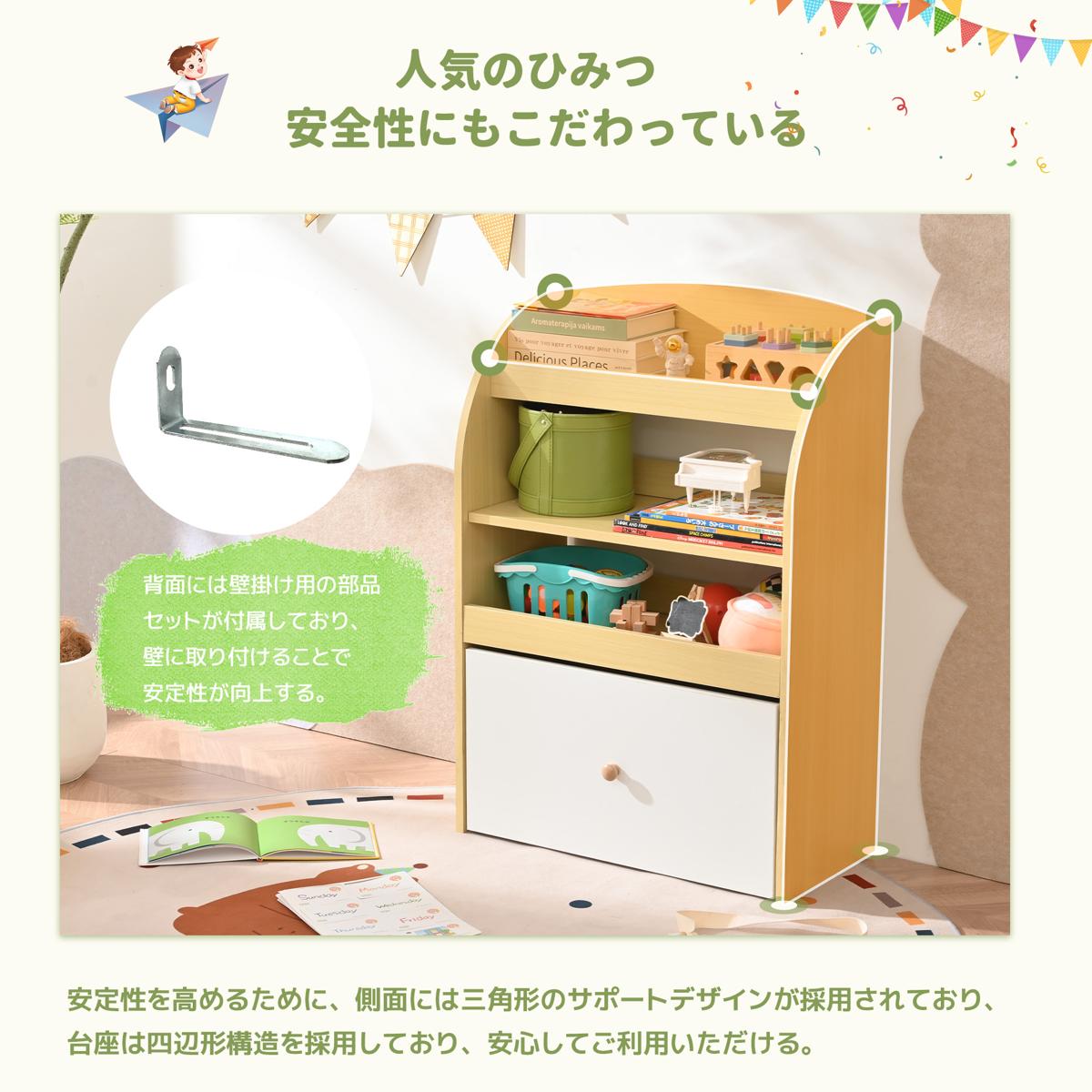 絵本ラック 絵本棚 本棚 収納ラック 多機能 おもちゃ収納 収納ボックス 子供部屋 収納ケース 子ども用 家具 木製 キッズ