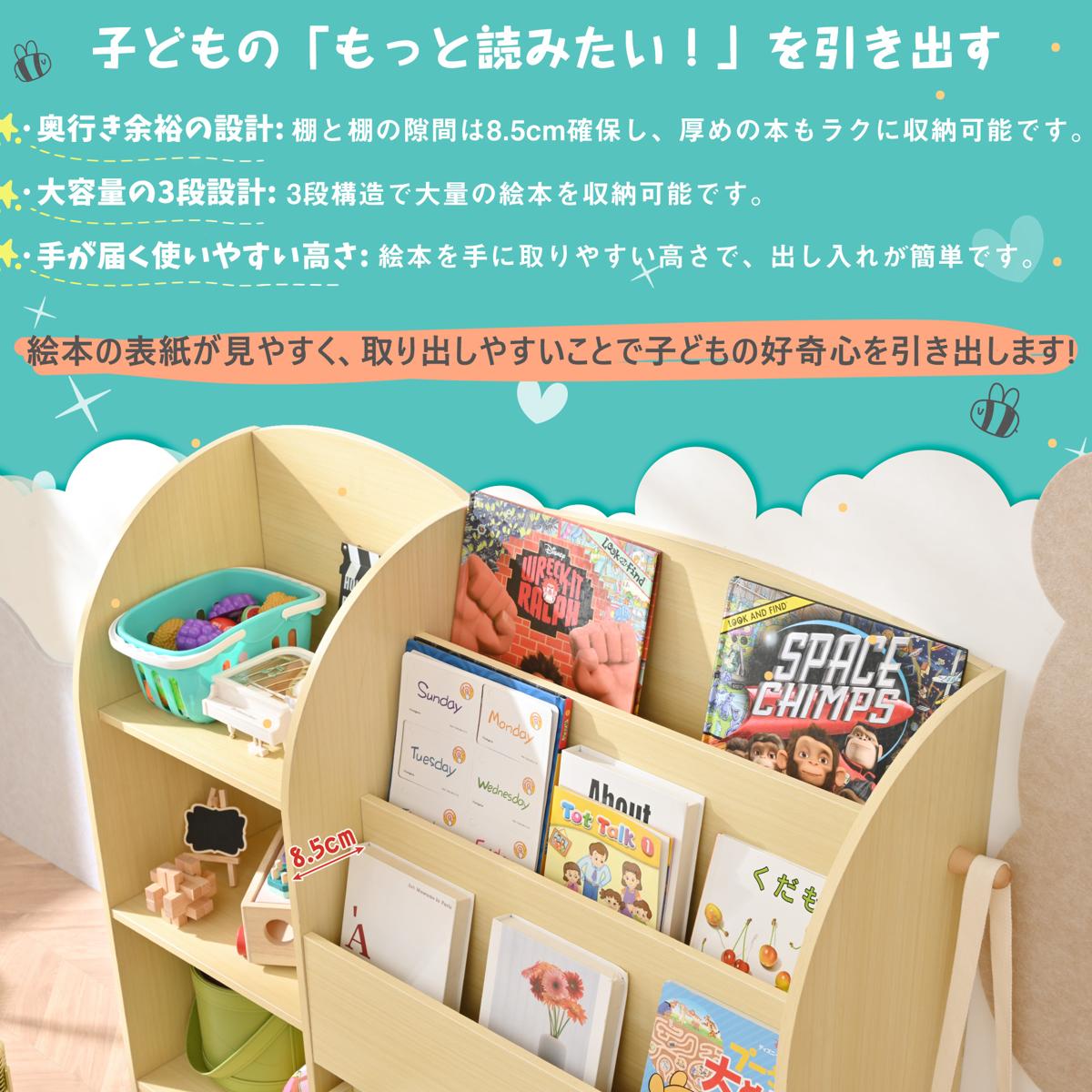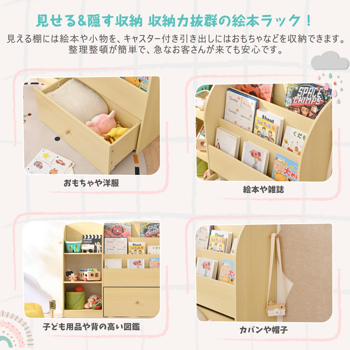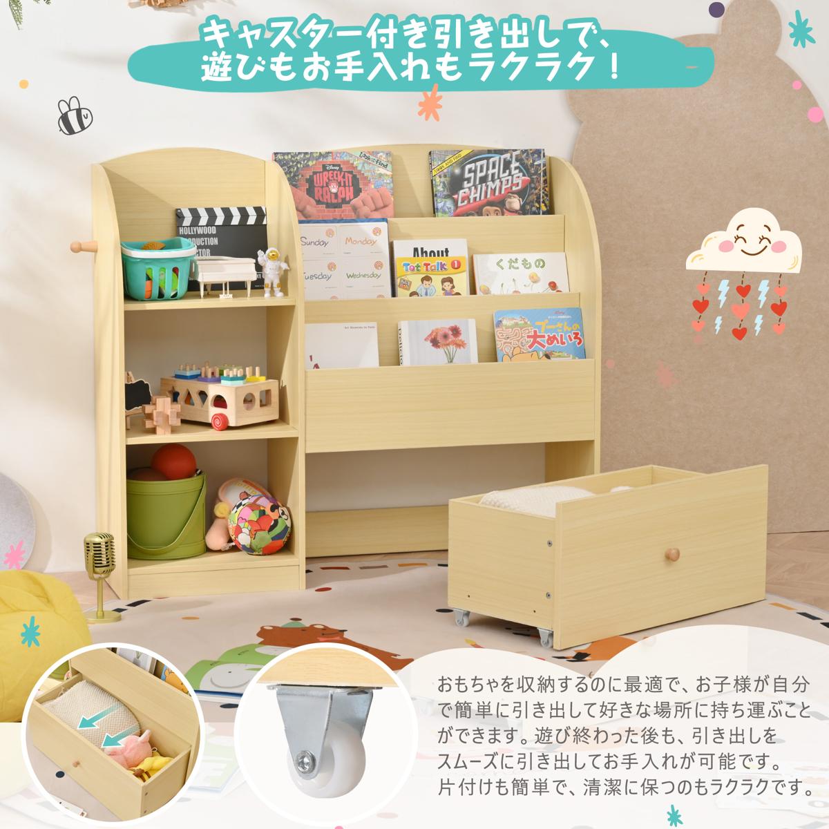 絵本ラック 絵本棚 大容量 本棚 収納ラック ワゴン付き キャスター付き 多機能 おもちゃ収納 収納ボックス 子供部屋 収納ケース 子ども用 家具 木製 キッズ