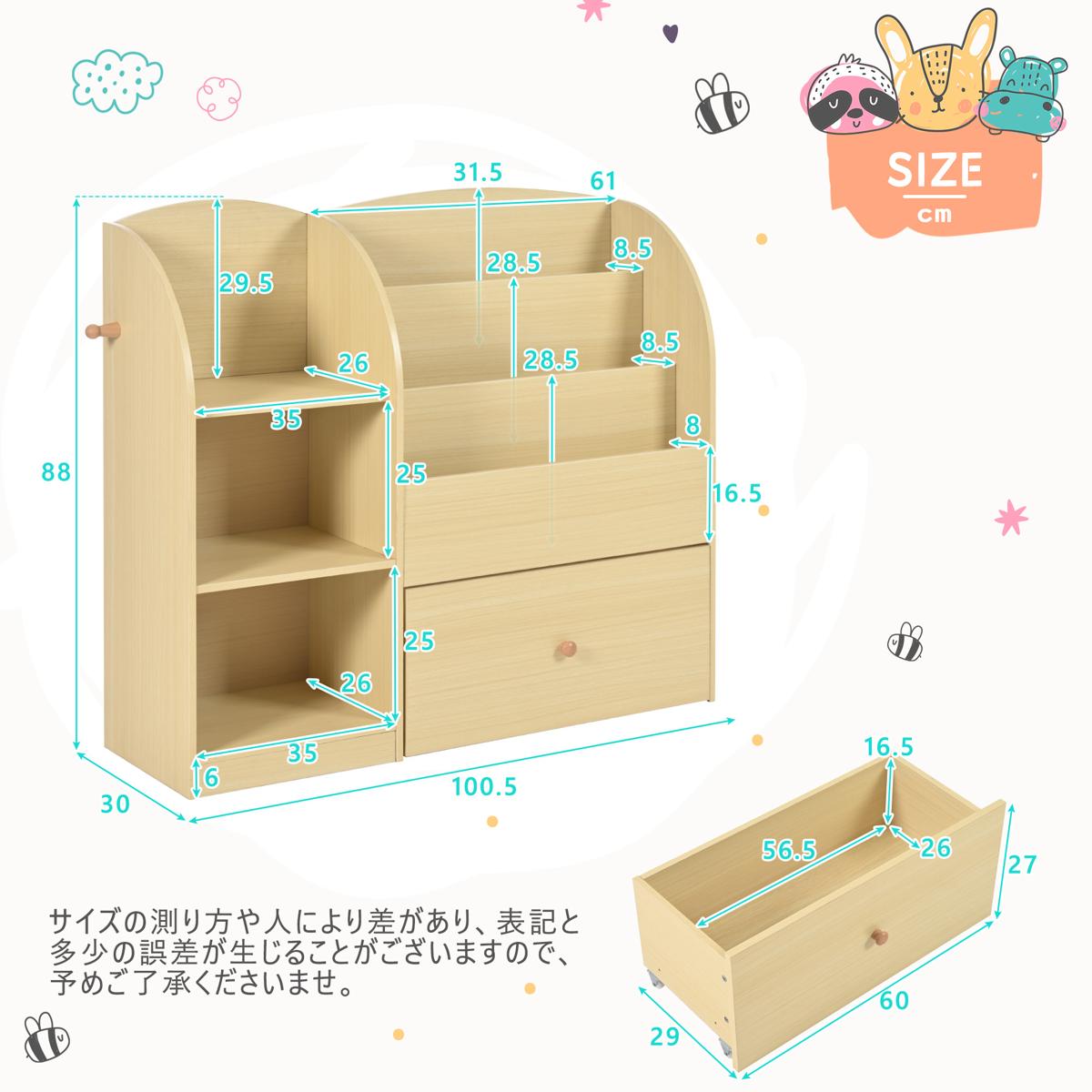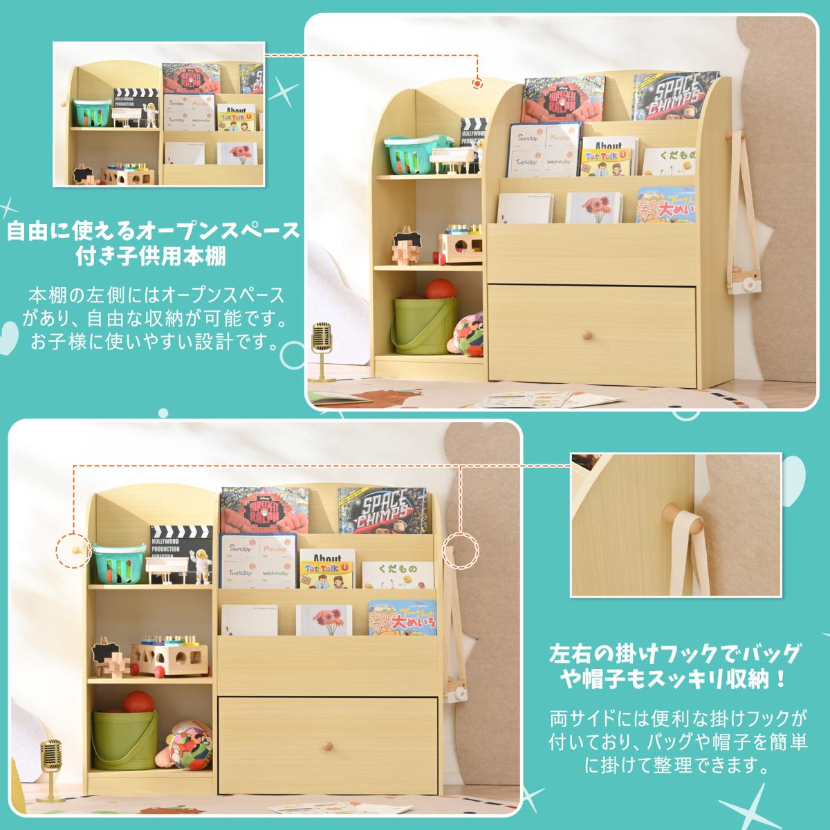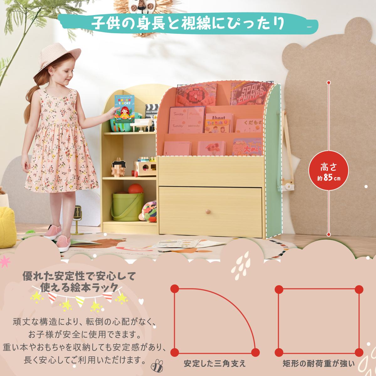 絵本ラック 絵本棚 大容量 本棚 収納ラック ワゴン付き キャスター付き 多機能 おもちゃ収納 収納ボックス 子供部屋 収納ケース 子ども用 家具 木製 キッズ