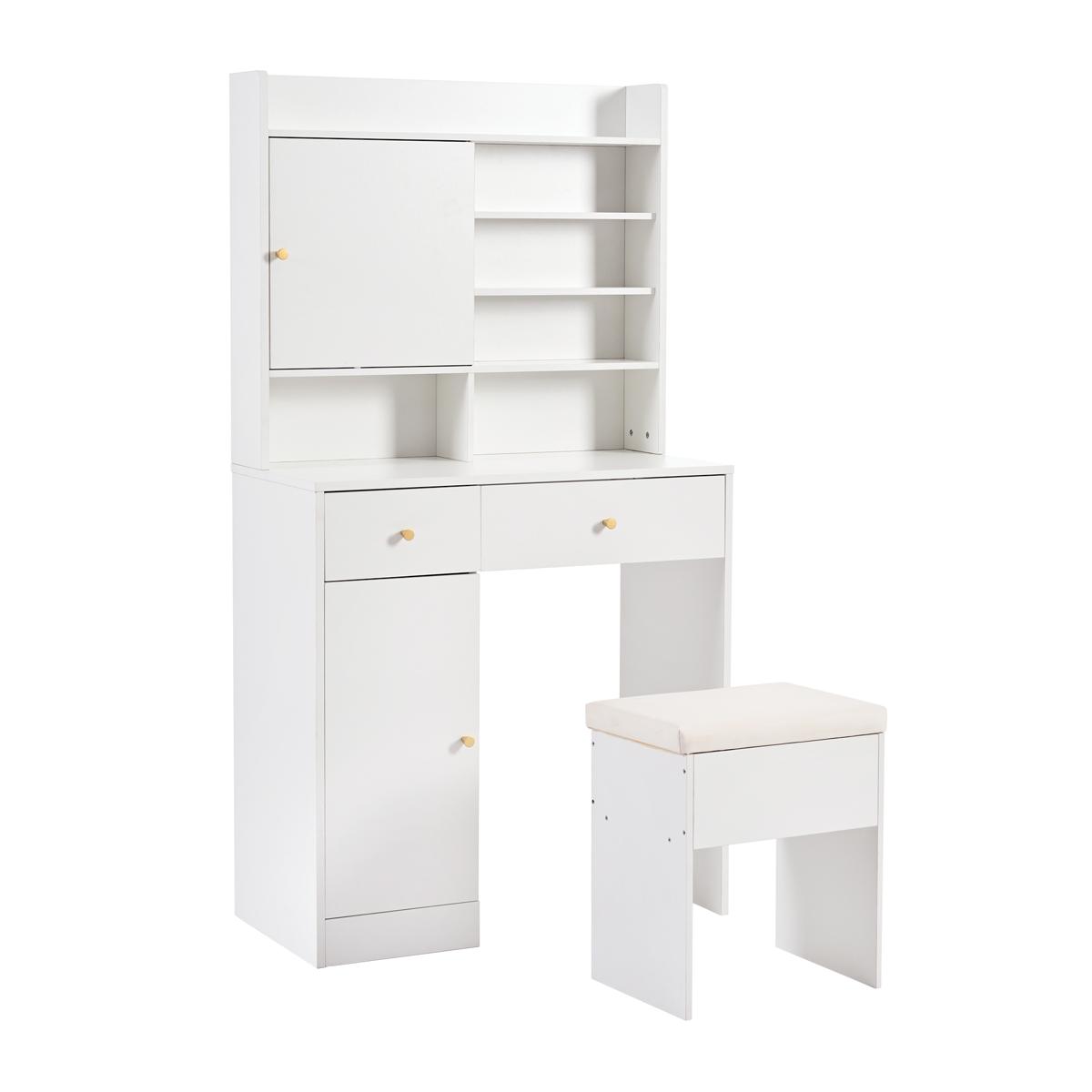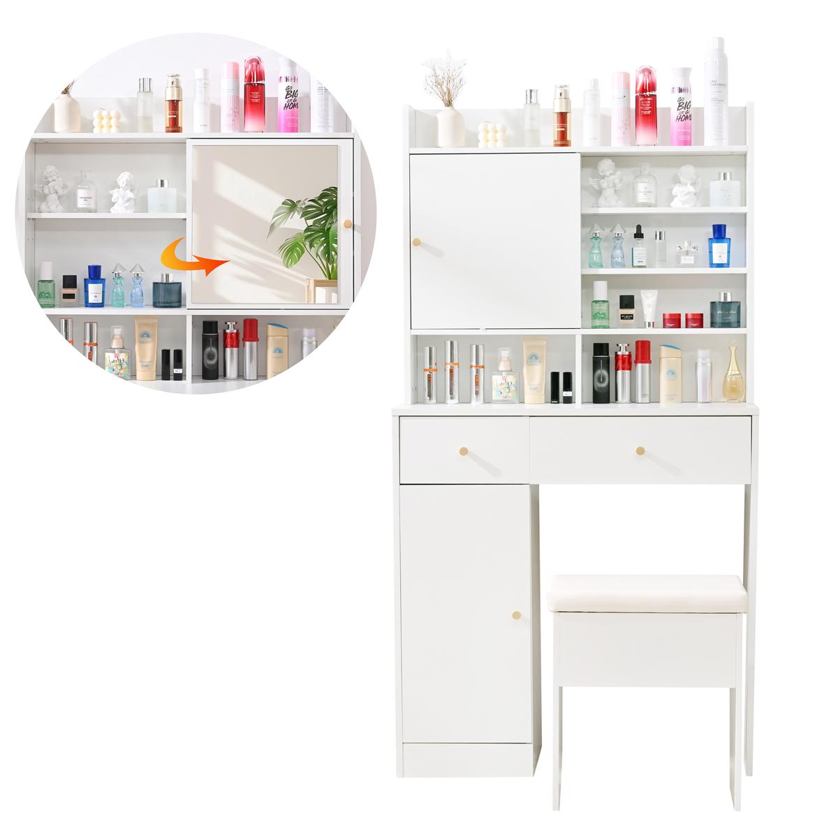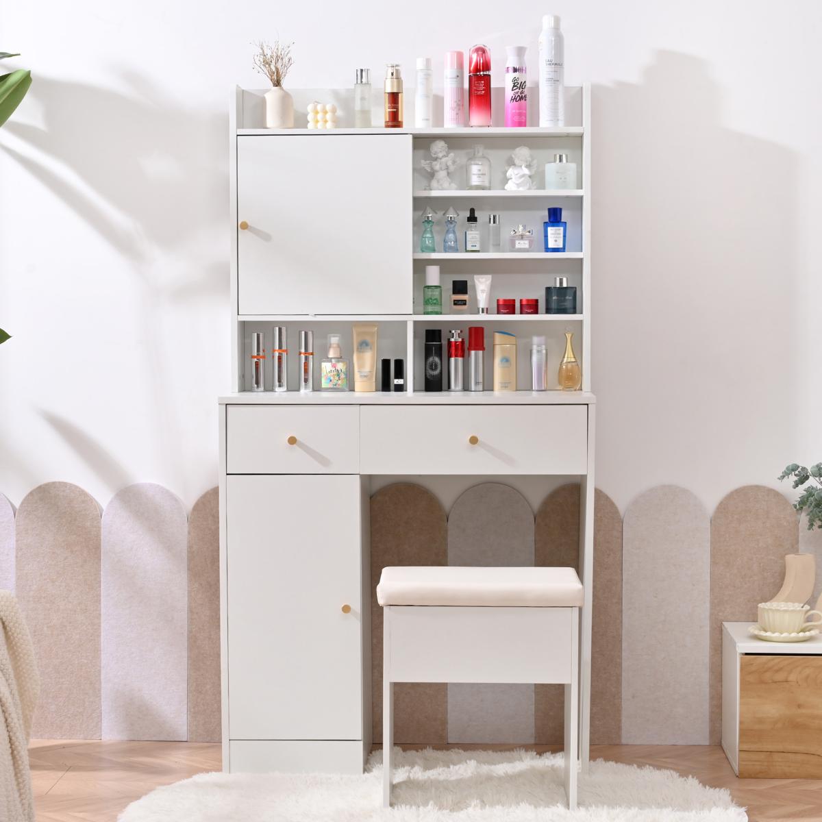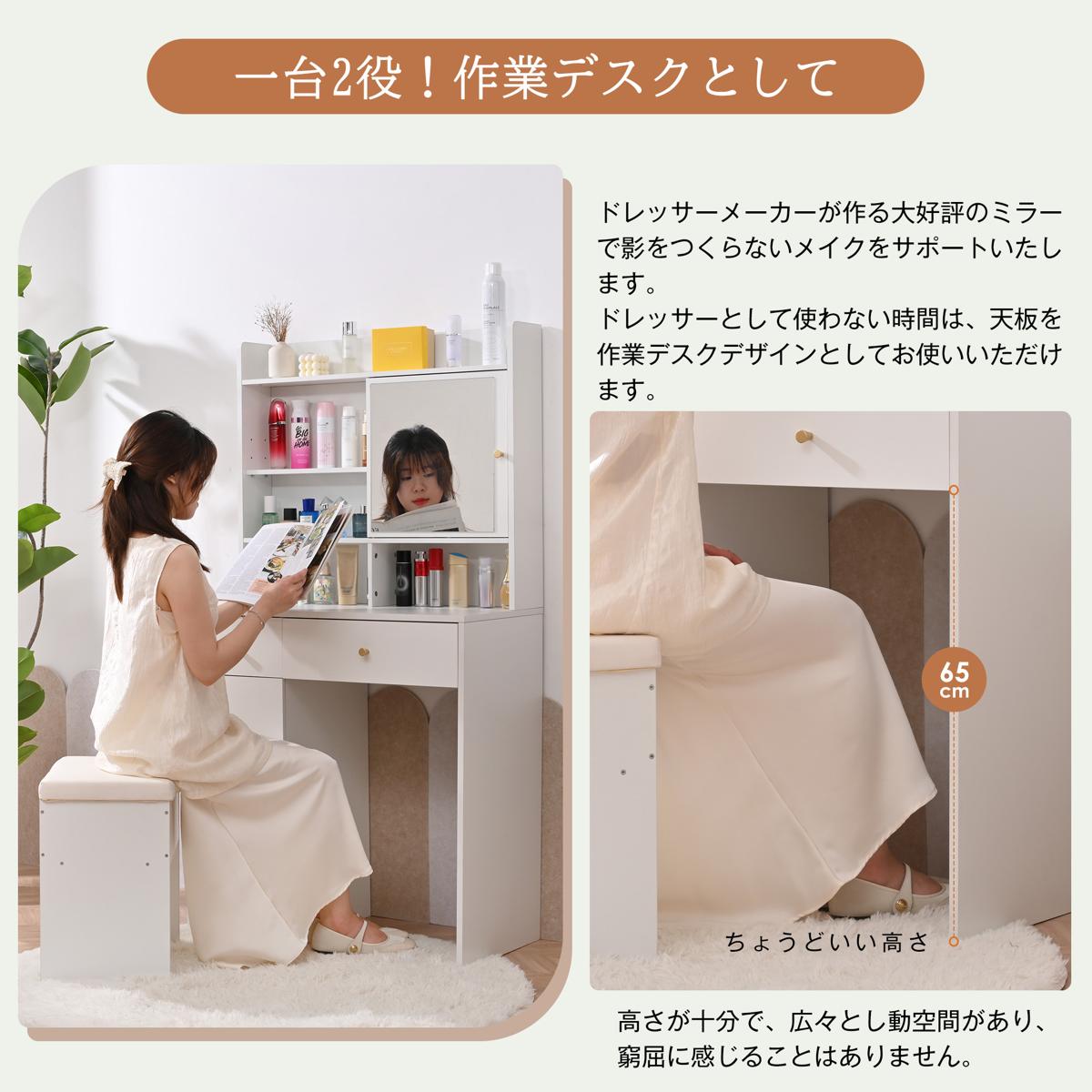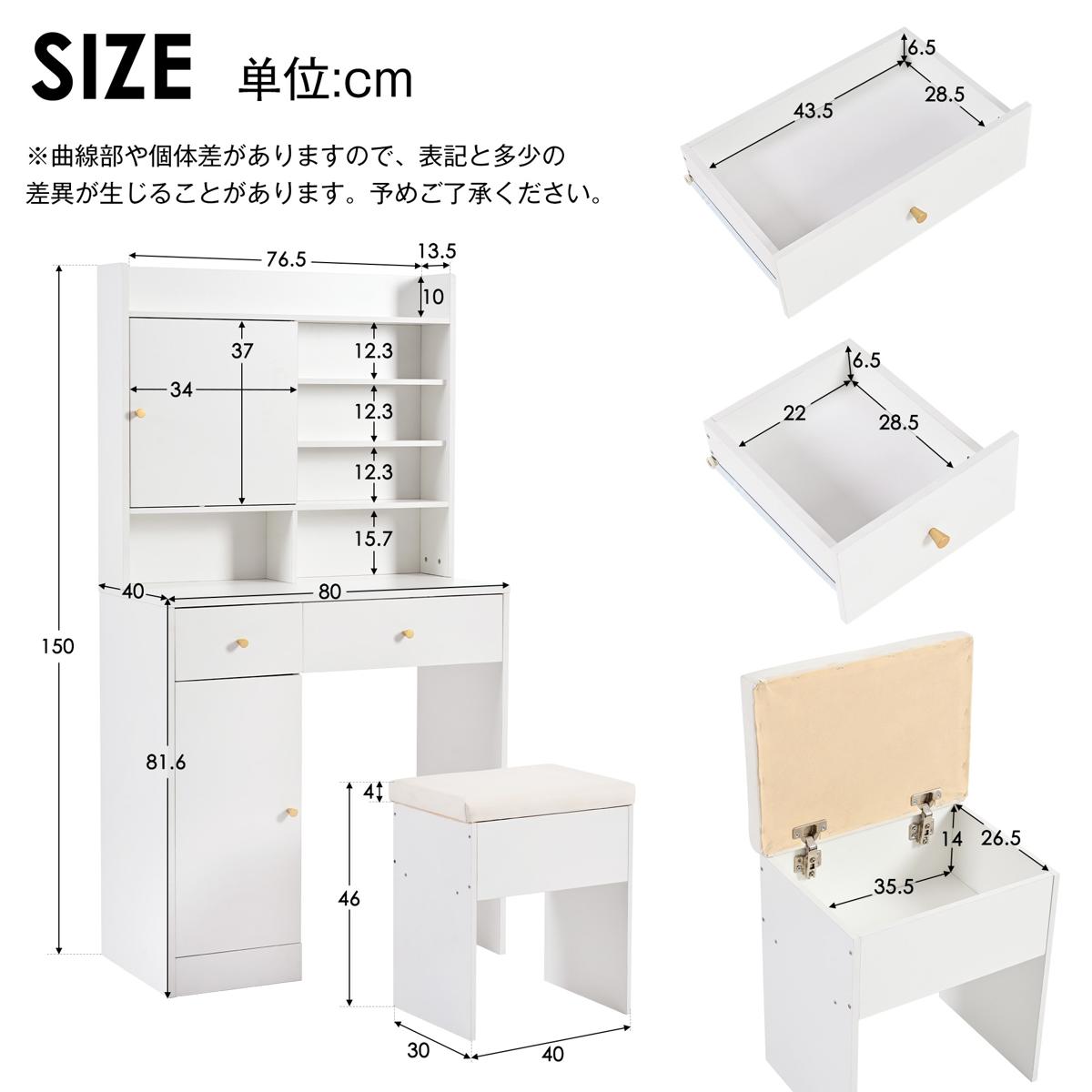 ドレッサー化粧台 テーブル 鏡台 ライト付き スツール付き 引き出し 収納 サイド収納 メイク台 シンプル 大容量 可愛い White Solid Wood