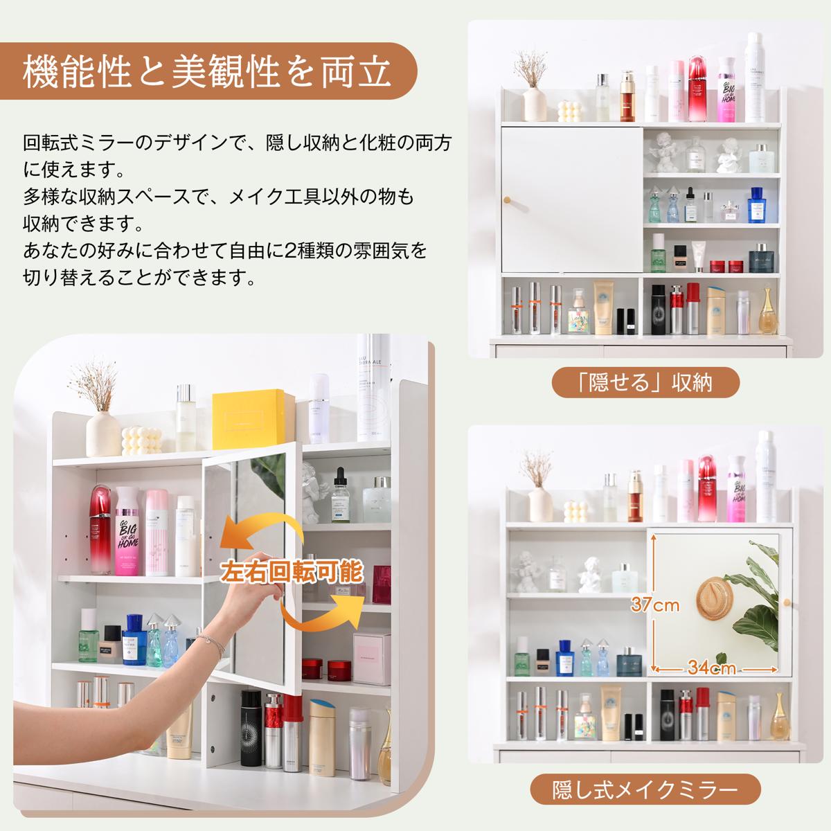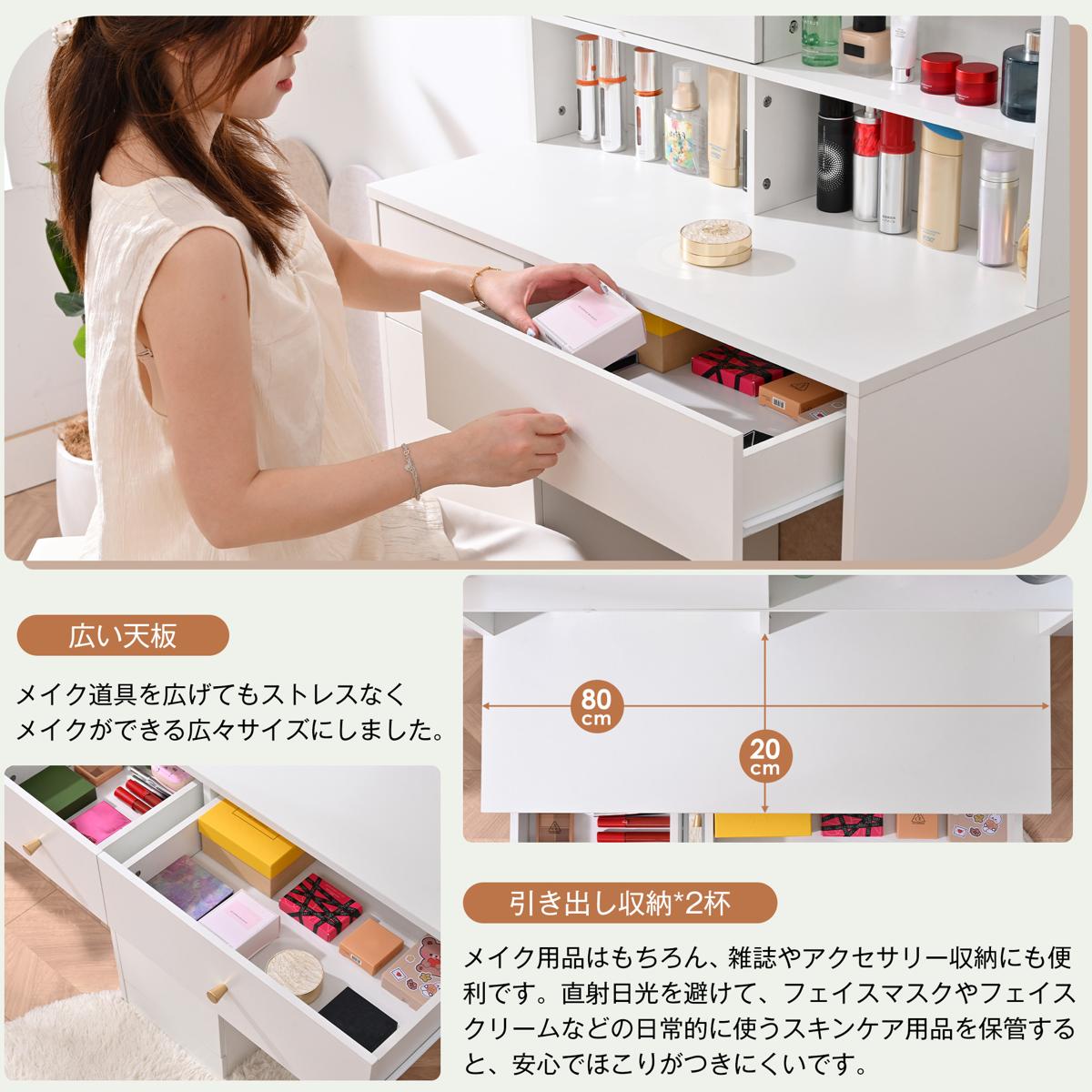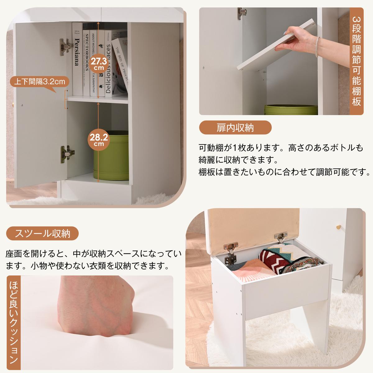 ドレッサー化粧台 テーブル 鏡台 ライト付き スツール付き 引き出し 収納 サイド収納 メイク台 シンプル 大容量 可愛い