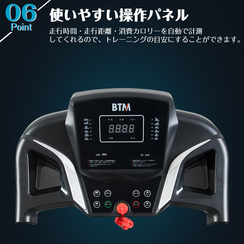 【使いやすい操作パネル】走行時間・走行距離・消費カロリーを自動で計測してくれるので、トレーニングの目安にすることができます。 目的別で設定できる:時間・カロリー・距離の3モード設定可能