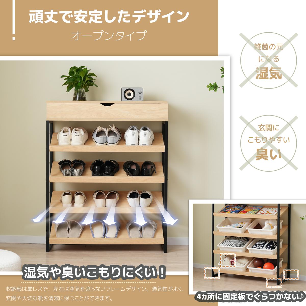 【通気性良い靴箱】扉や壁がないので通気性も良く、湿気やニオイがこもりません。耐久性と安定性はもっと強くになります。汚れが付いても、雑巾でさっとひと拭きできてお手入れ簡単です。