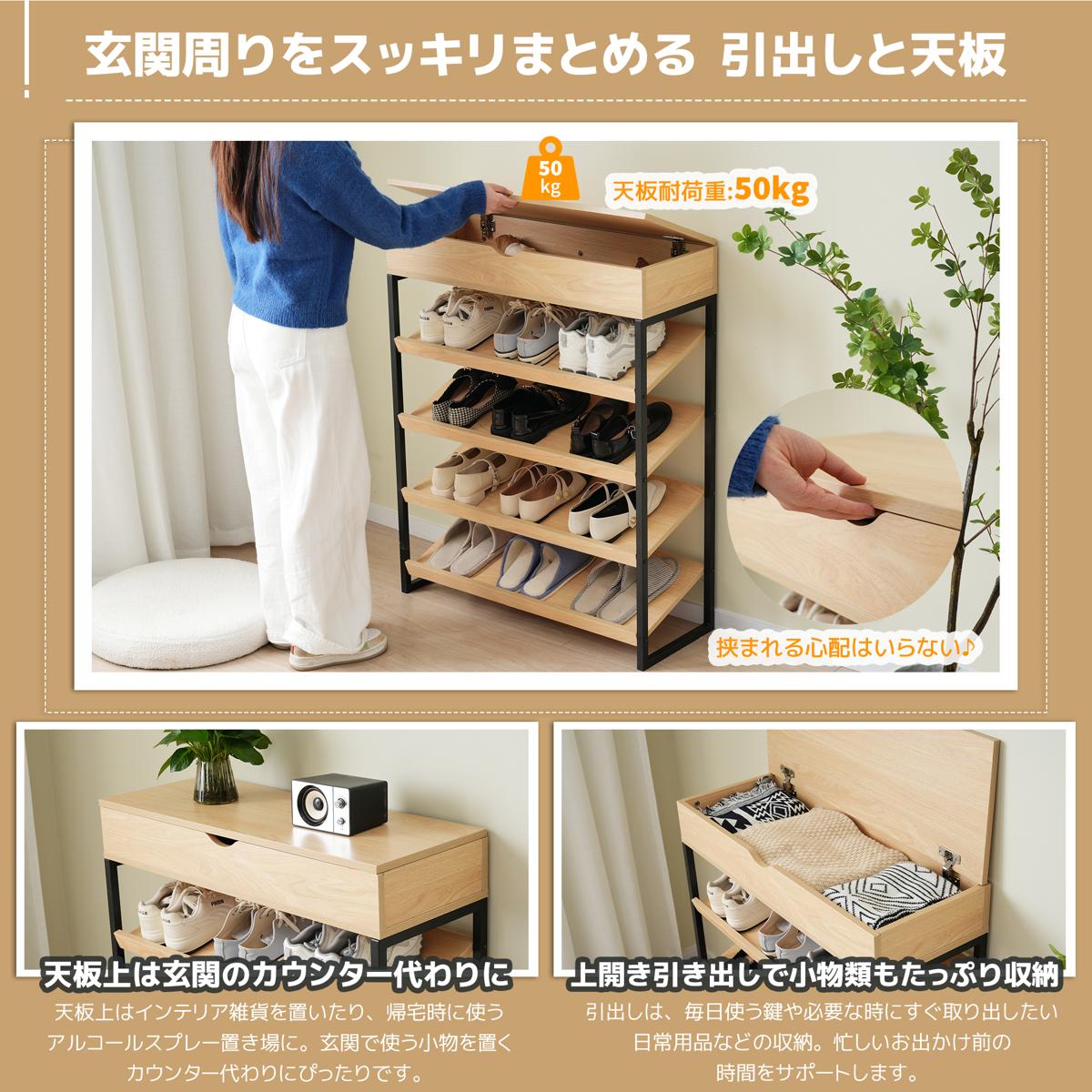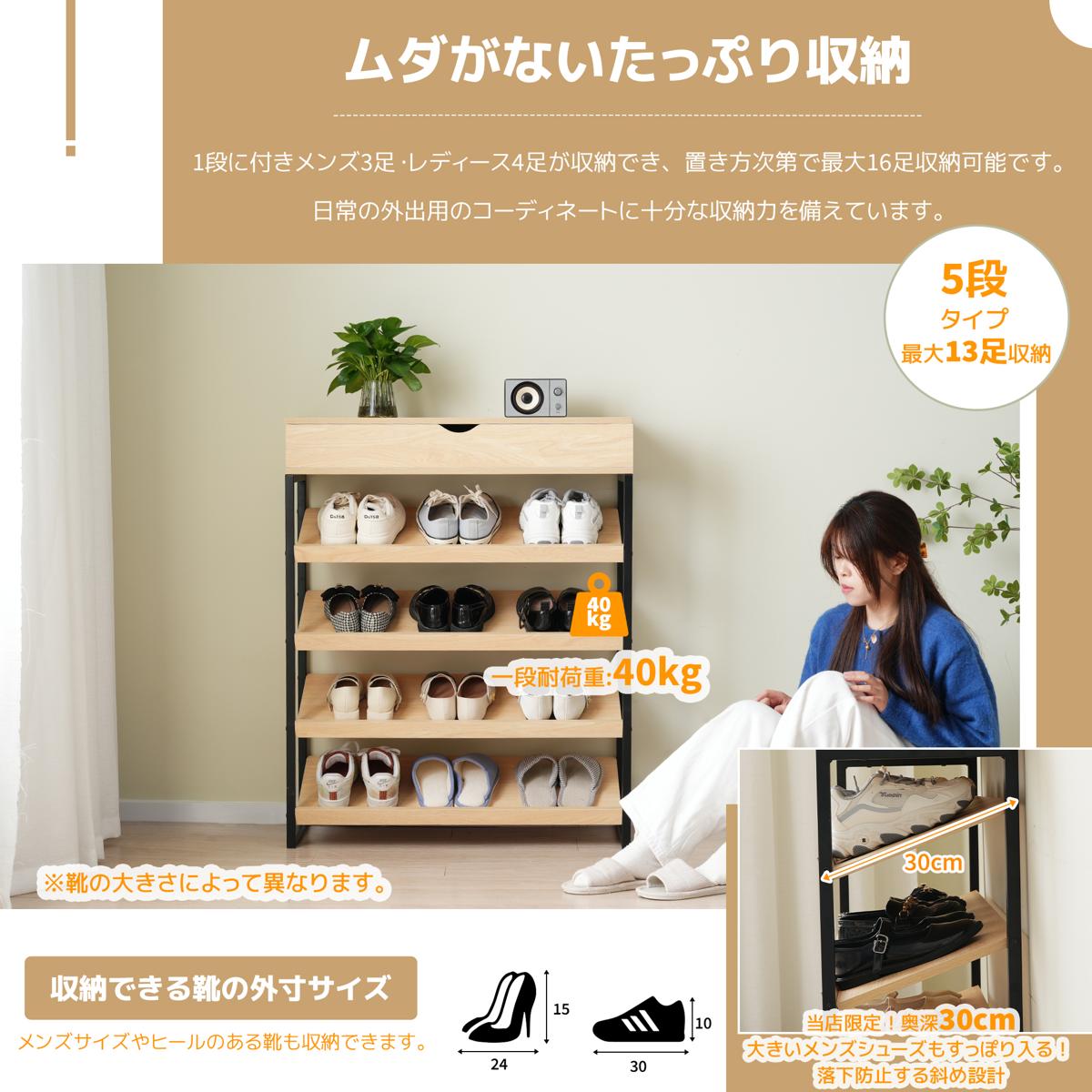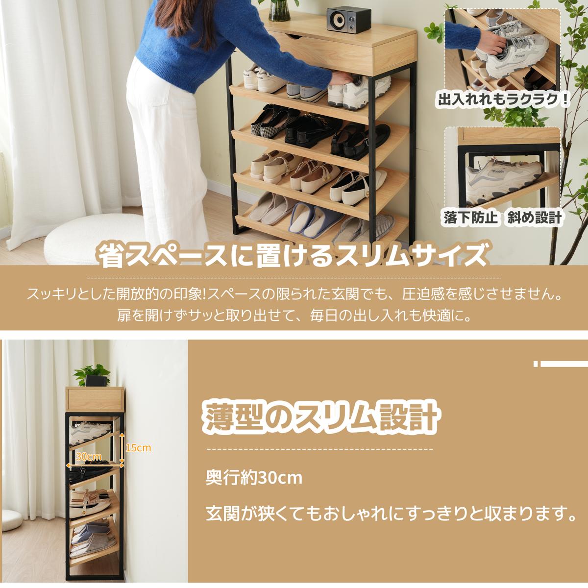 シューズラック 靴棚 玄関 靴収納ラック 下駄箱 シューズ 収納 スリム 玄関 靴置き 棚 収納棚 5段 靴入れ シューズボックス 収納家具 リビング収納 シンプル 省スペース おしゃれ Natural Plywood