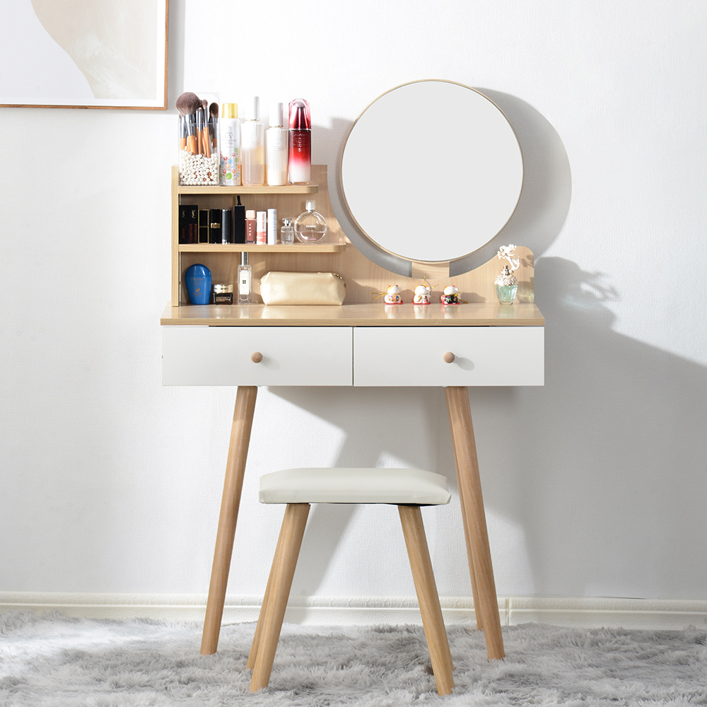 ドレッサー化粧台 梳妆台 化粧テーブル 化妆桌 White Solid Wood