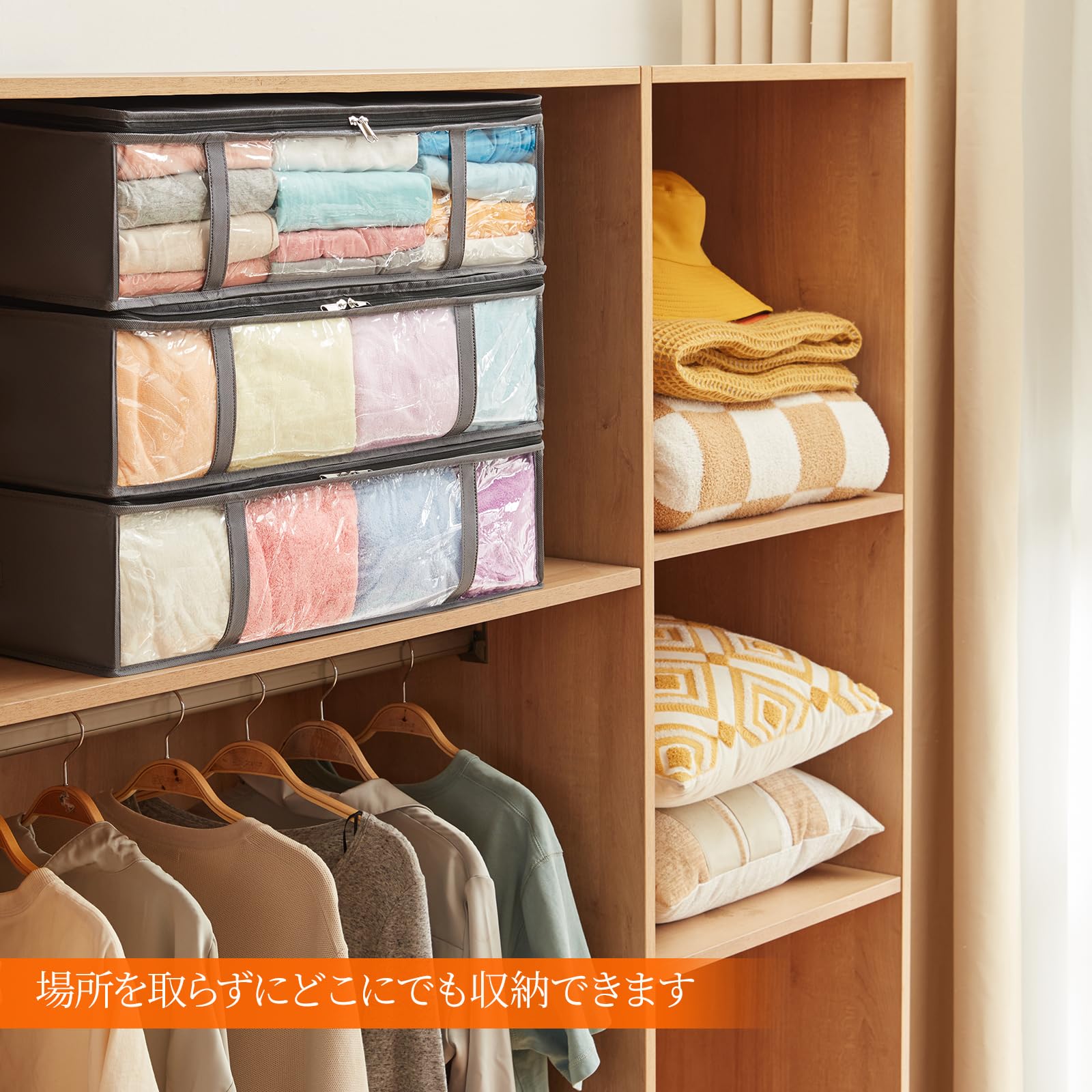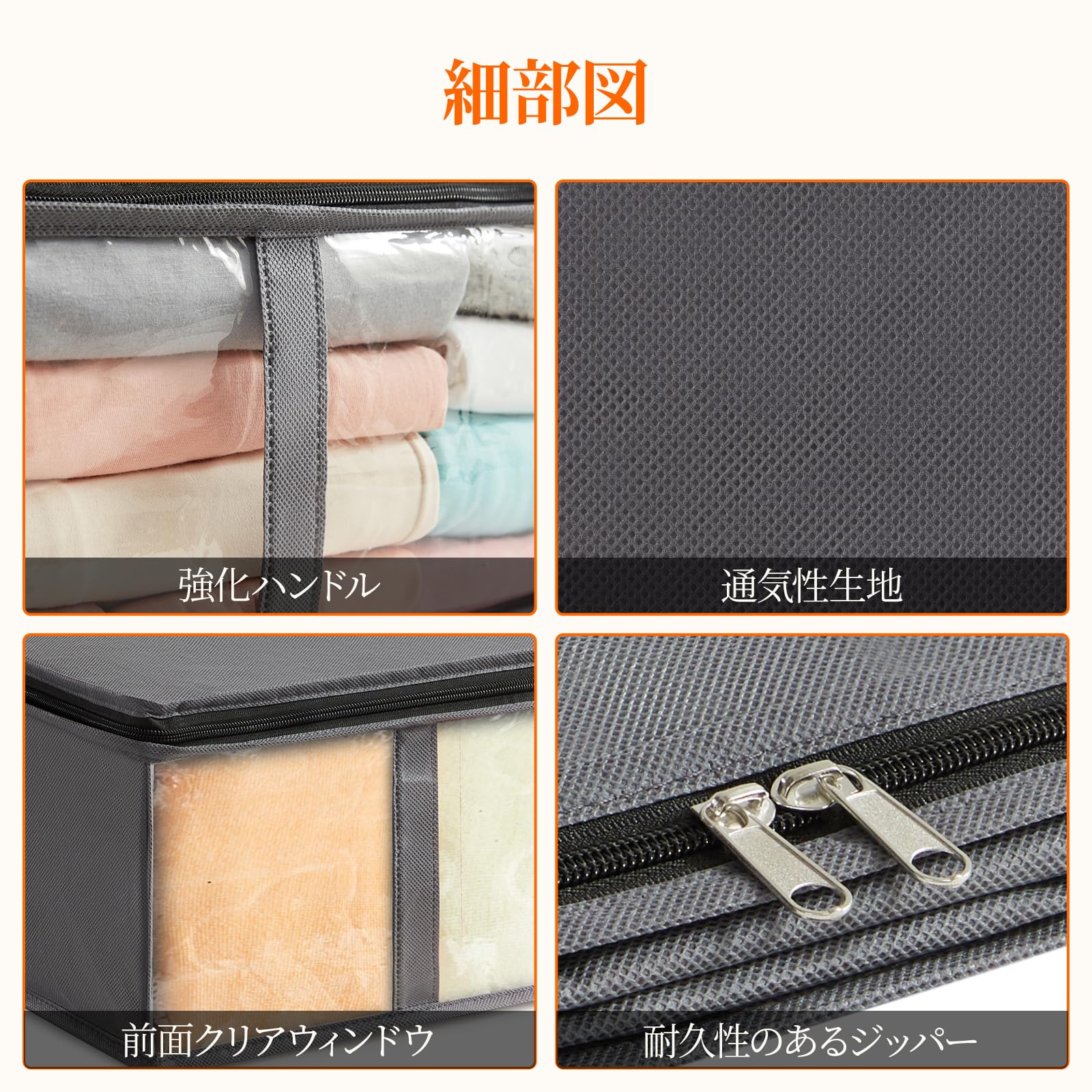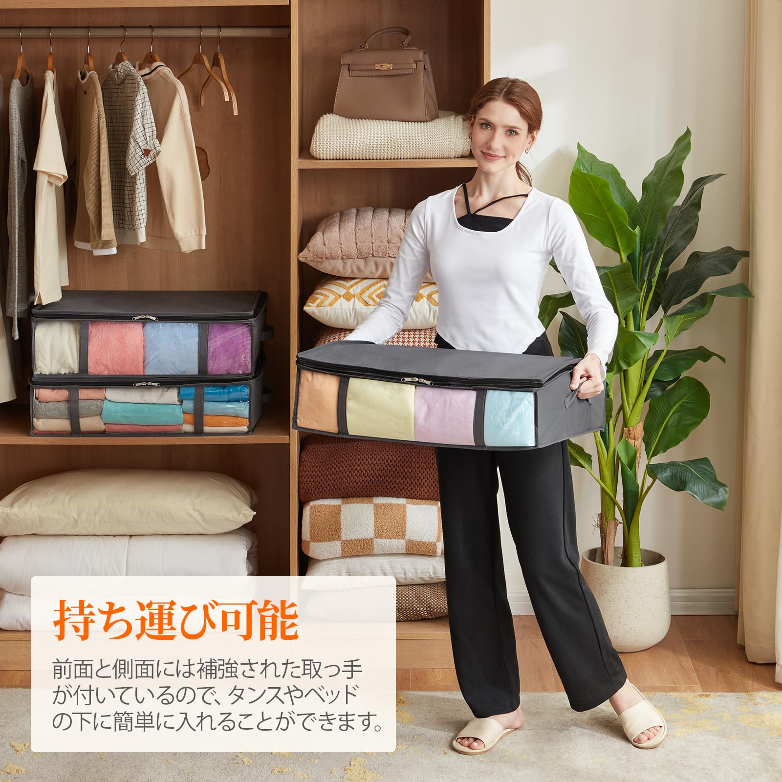 2個セットー 特大容量 ケース 折りたたみ 強固なプラスチック側壁板 ベッド下収納ボックス ケース 厚い底 積み重ね可能 洗える ベッド 衣装ケース 収納ボックス 衣類収納 布団ケース 収納 強化ファスナー 折り畳み 通気 耐久性 透明窓