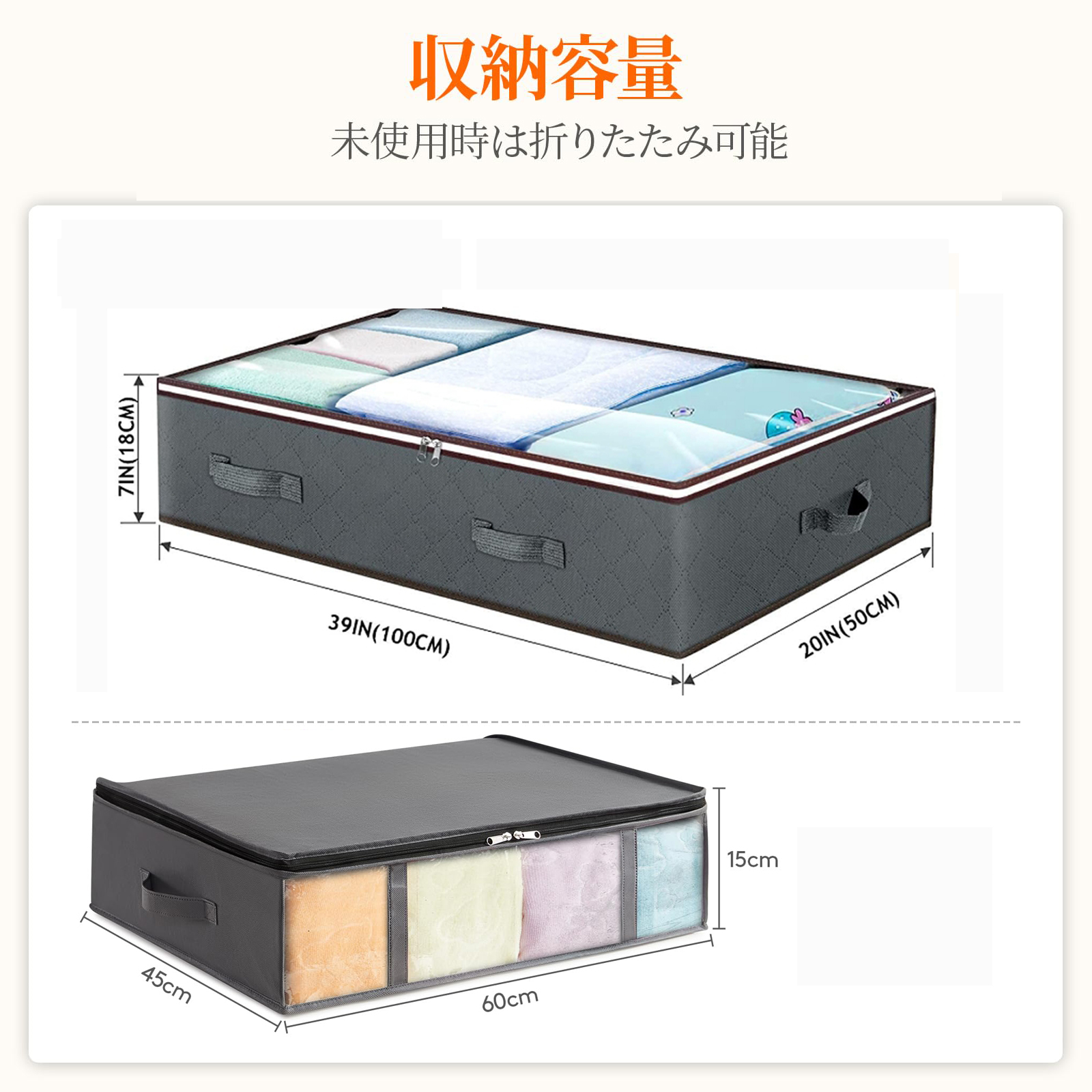 ベッド下収納下容器 折りたたみ式衣類収