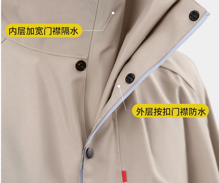 【防水&通気レインコート】このレインコートは防水性と耐摩耗性に優れたナイロンオックスフォード素材を採用し、耐水圧10000mmに耐え、三重防水加工を施されており、雨水が浸透せず、防水性があります。