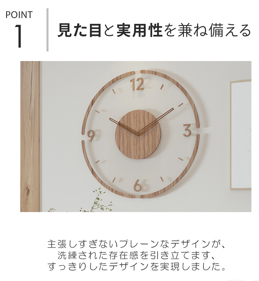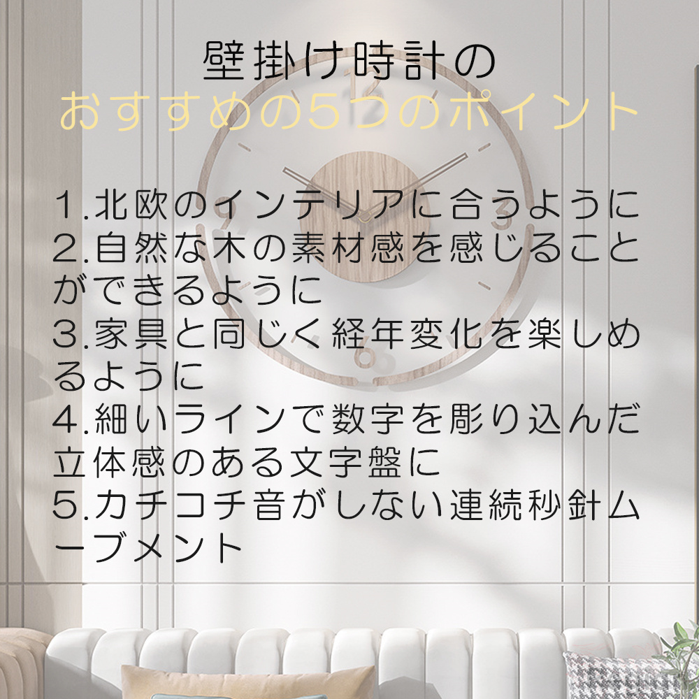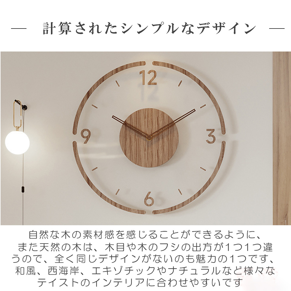 シンプルでおしゃれなデザイン 北欧テイストでおしゃれな壁掛け時計で、木の温もりが感じられます。