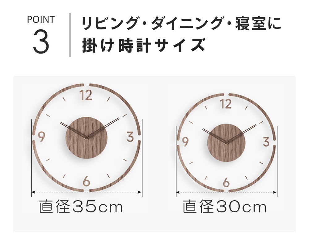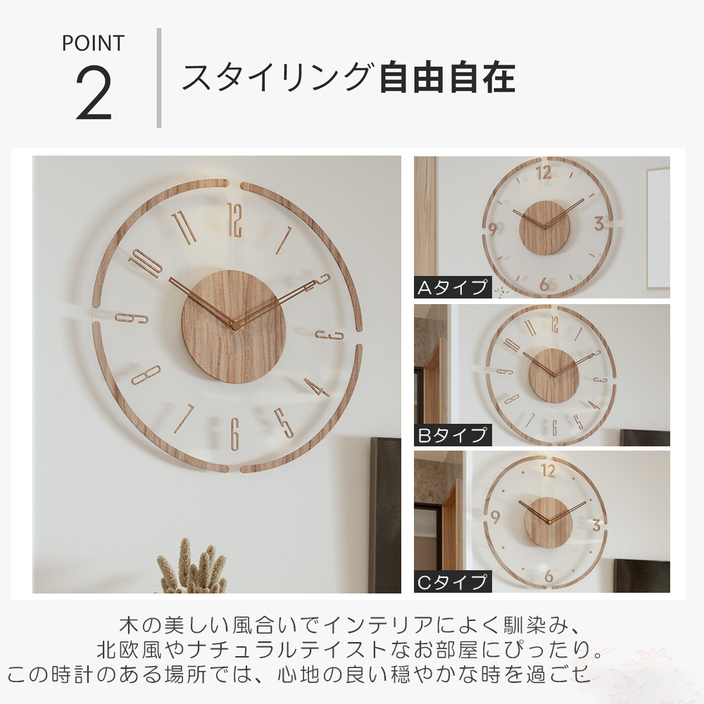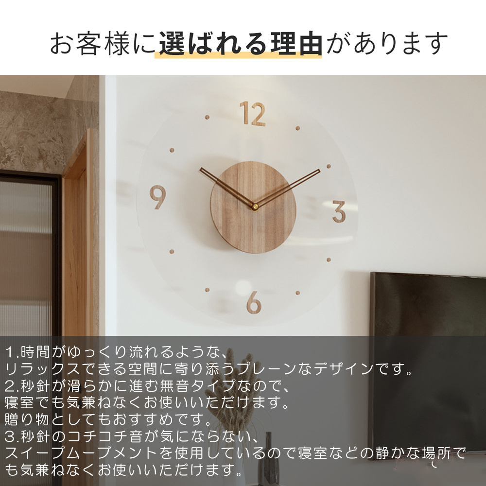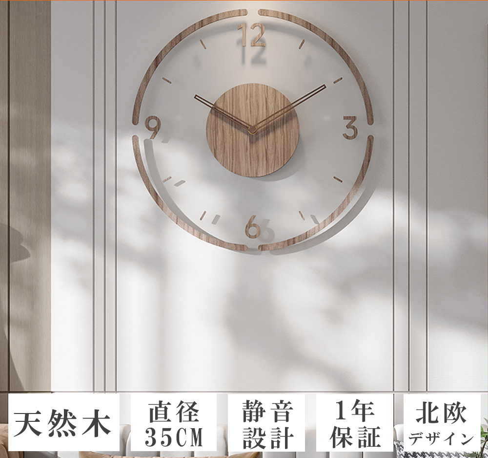 シンプルでおしゃれなデザイン 北欧テイストでおしゃれな壁掛け時計で、木の温もりが感じられます。