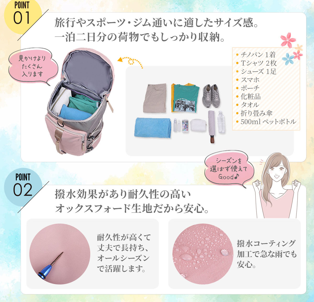 レディース ボストンバッグ 修学旅行 女の子 リュックサック リュック 小学生 中学生 1泊2日 2泊3日 おしゃれ 軽量 防水 通学 トラベル スポーツバッグ バックパック ショルダー 斜め掛け ナイロン メンズ 高校生 3way シューズ収納