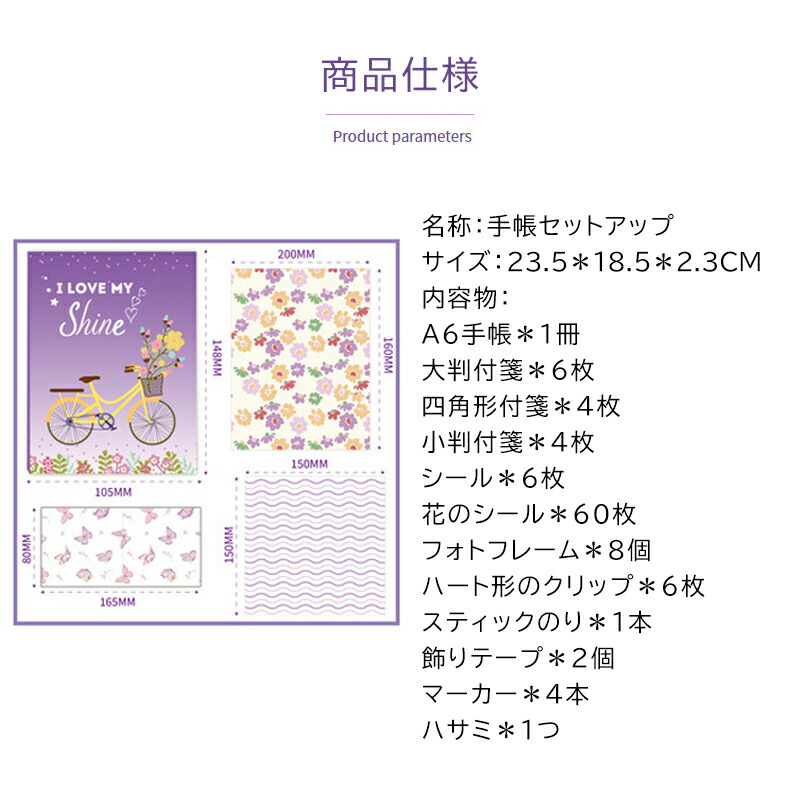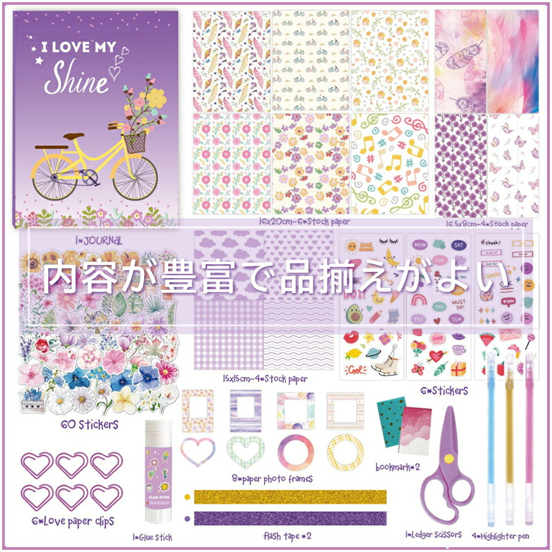 手帳セット日記帳 かわいいド シール帳 DIY手帳 ノートセット メモ帳 日記帳 付箋本 和紙テープ 手帳素材パック 女の子 小学生 子供 進学 クリスマス 誕生日 プレゼント