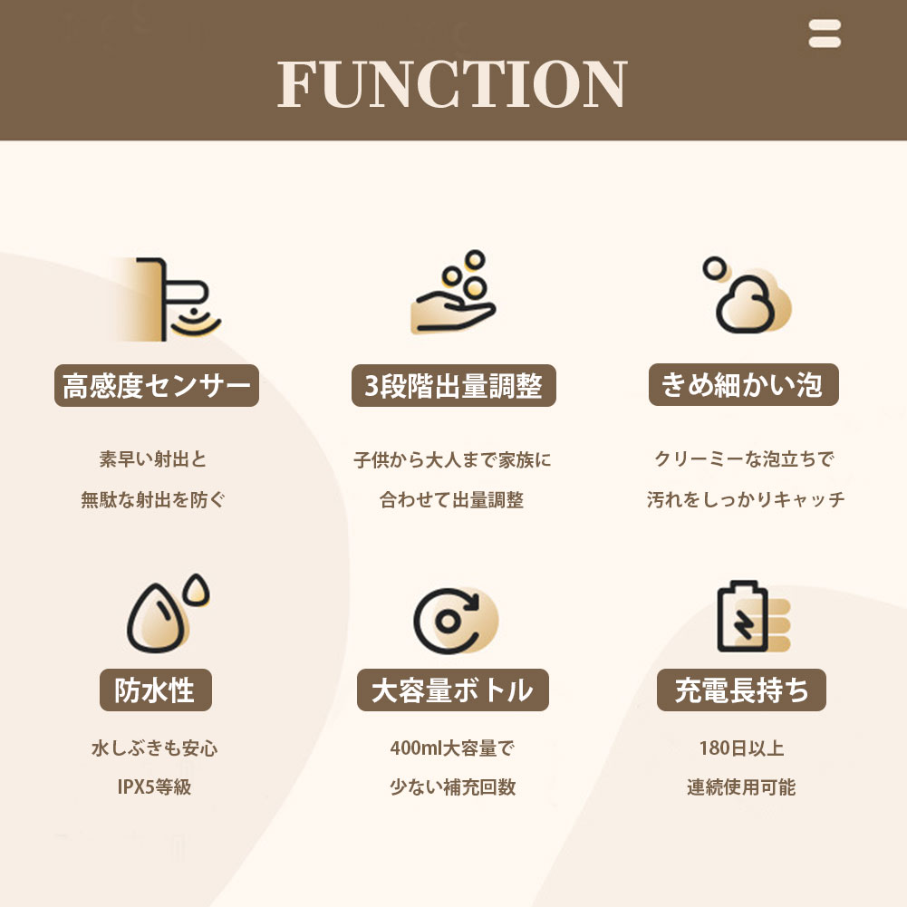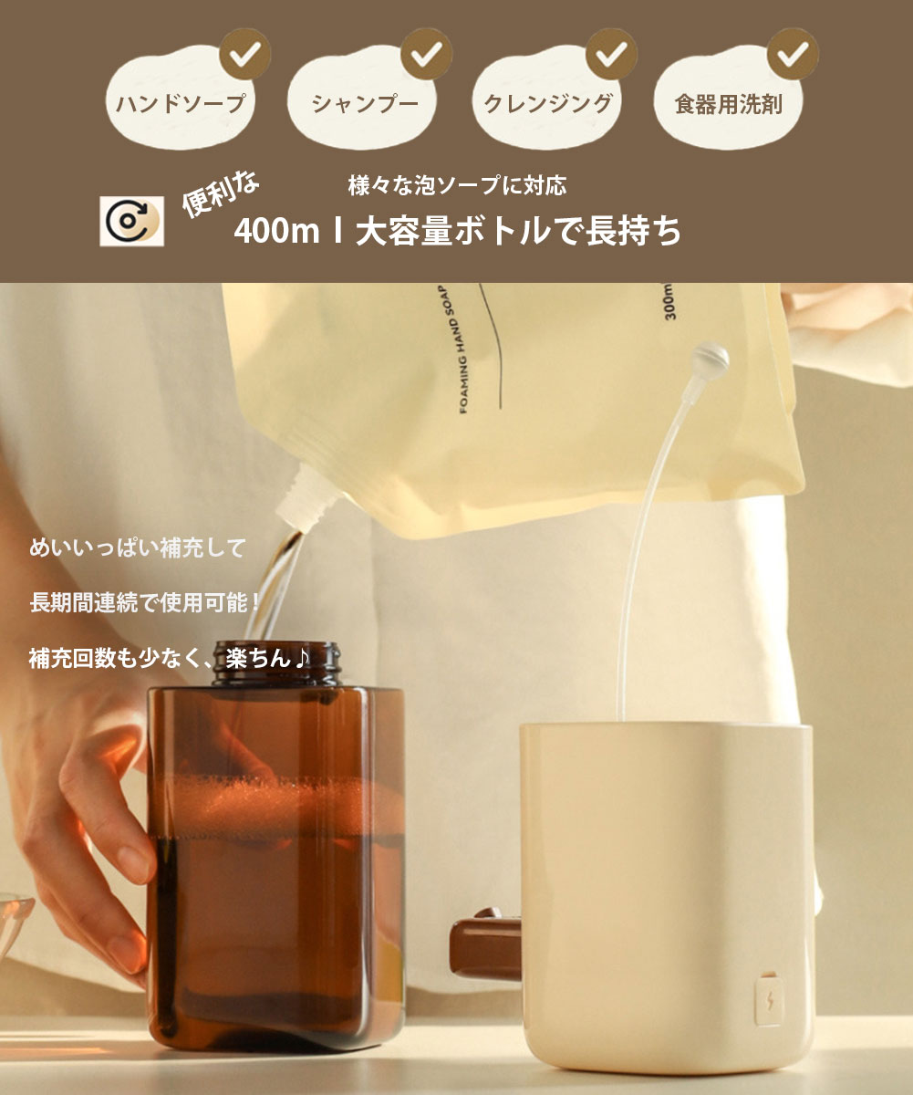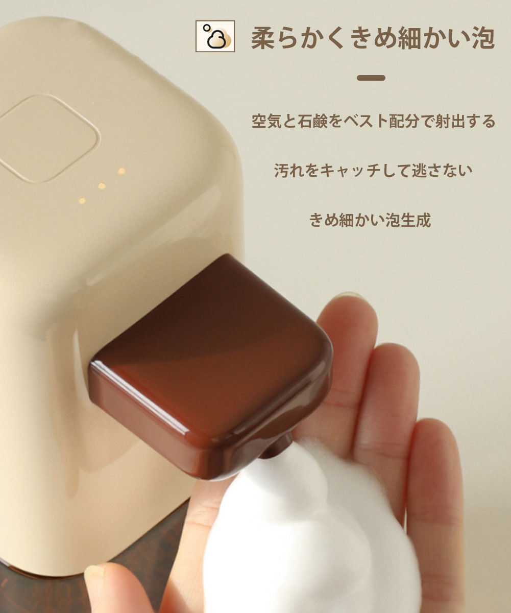 自動ソープディスペンサー ソープディスペンサー オートソープディスペンサー タッチフリー 自動 衛生的 スムーズ 手洗い ブラウン ブルー 茶色 青 泡 シャンプー クレンジング お風呂