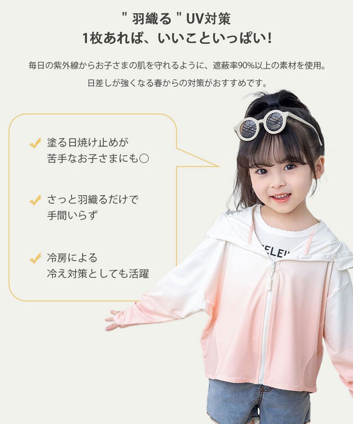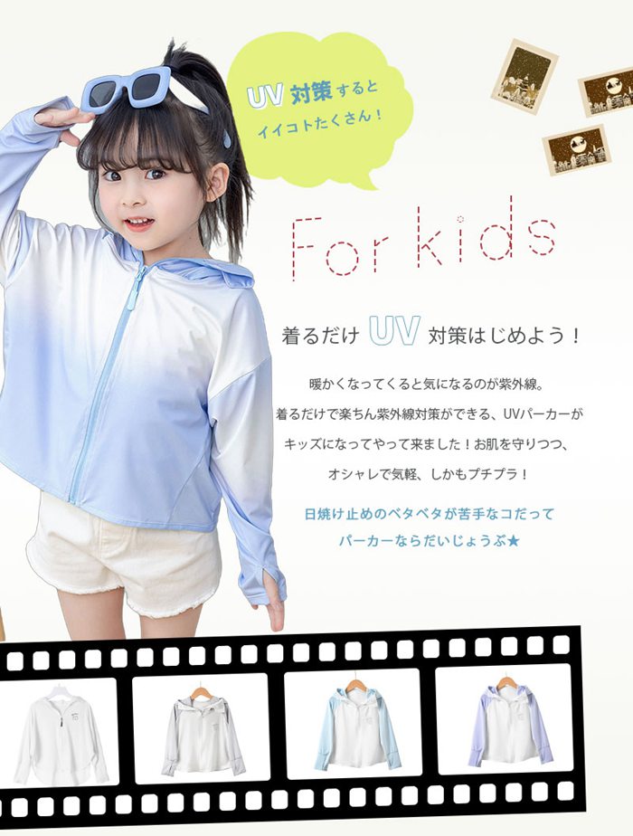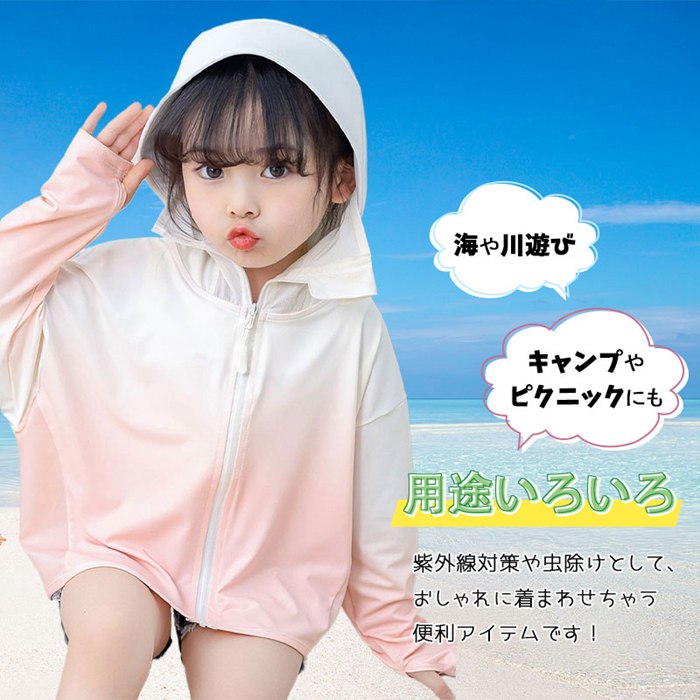 商品紹介 UVカットパーカーは、お子様の夏の日常やレジャーに最適なアイテムです。