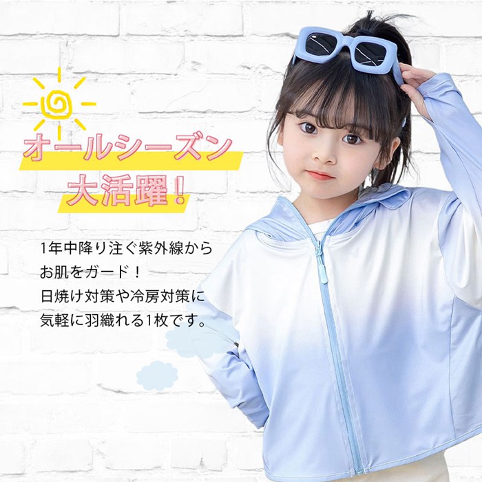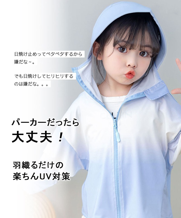 お子様の健やかな成長をサポートするこのパーカーで、夏の日差しを気にせず、外での活動を存分に楽しんでください。
