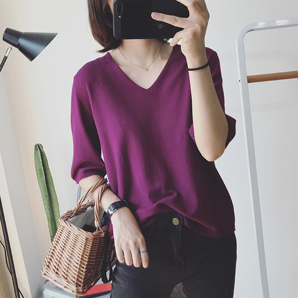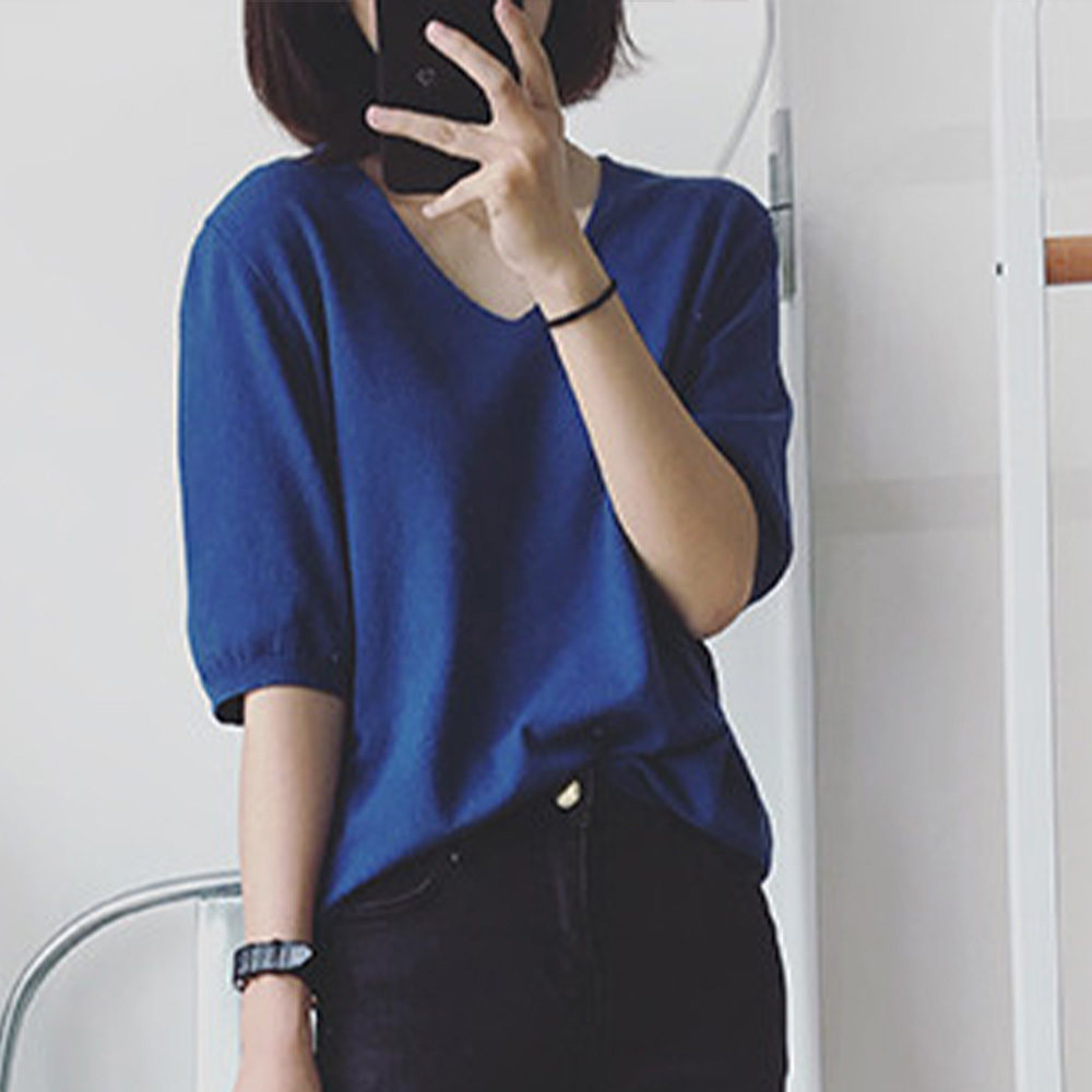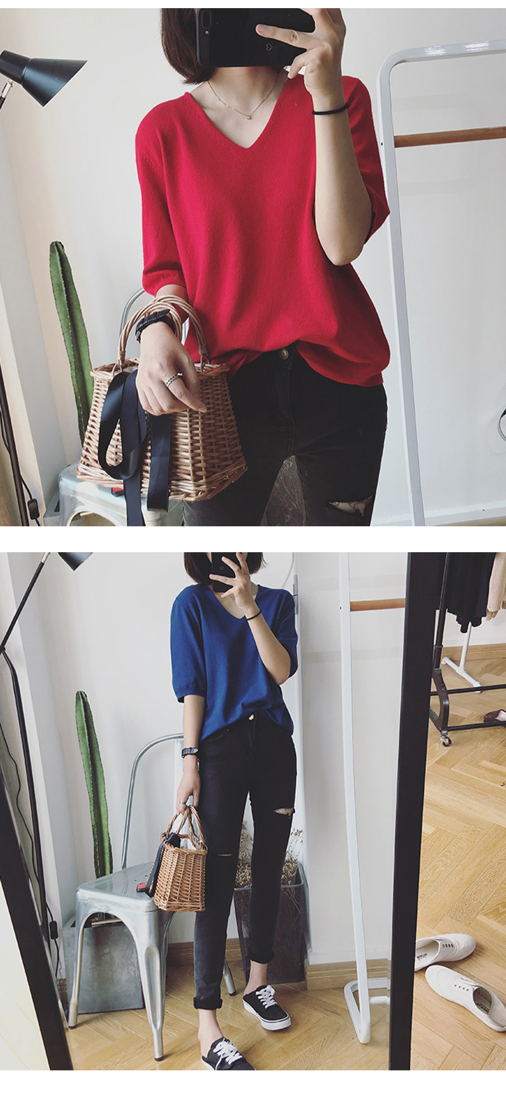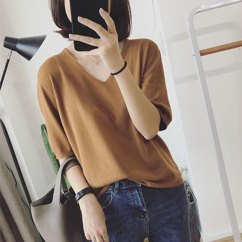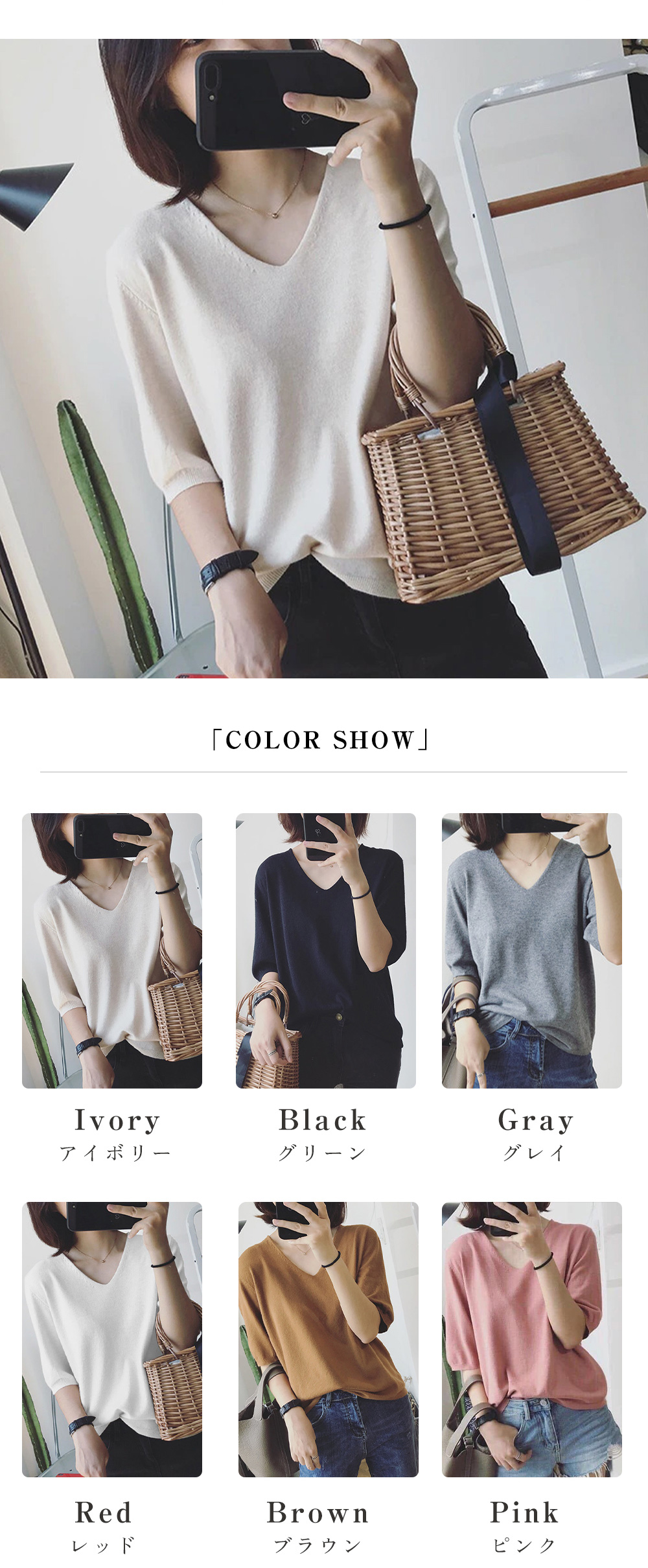 ニット 半袖 サマーニット レディース 春 夏 ニット トップス 薄手 プルオーバー Vネック カジュアル フェミニン ベーシック 無地 着回し 愛い 春 春夏 夏 送料無料