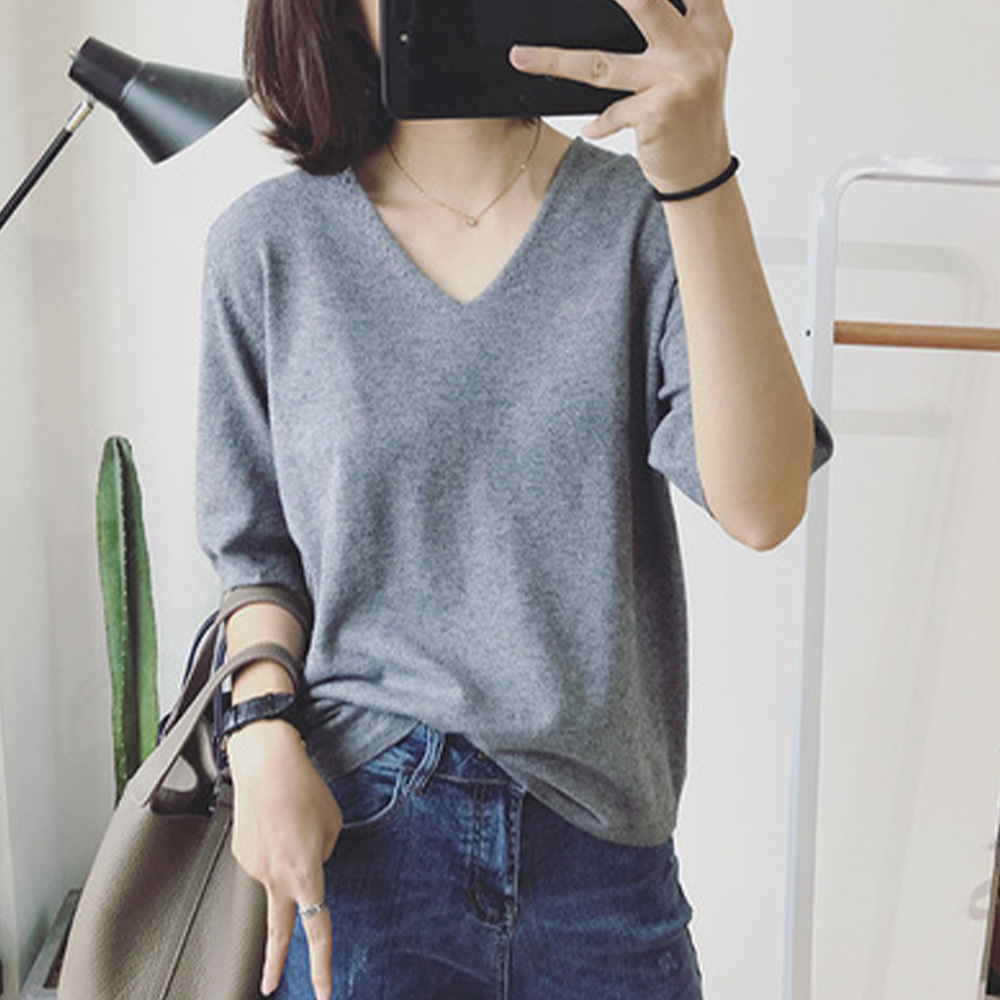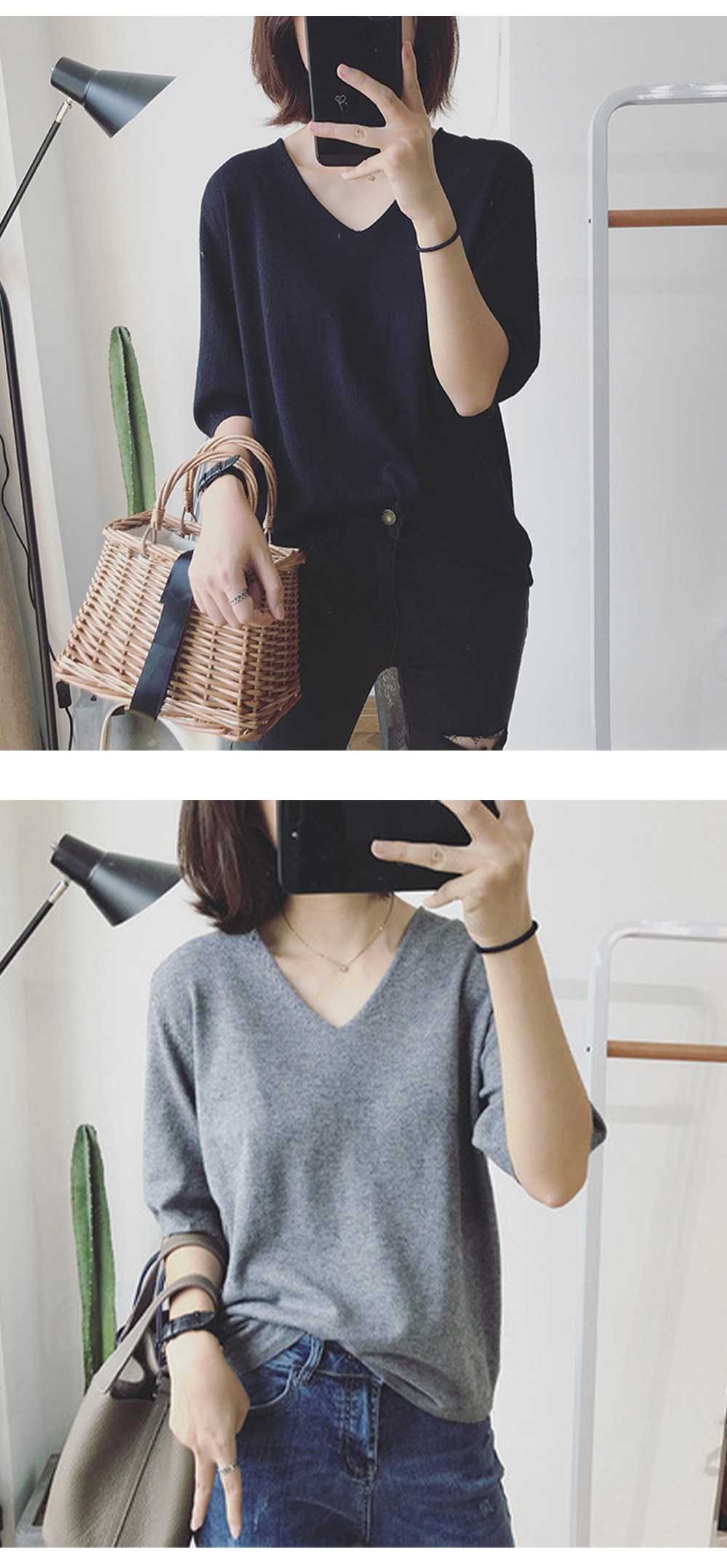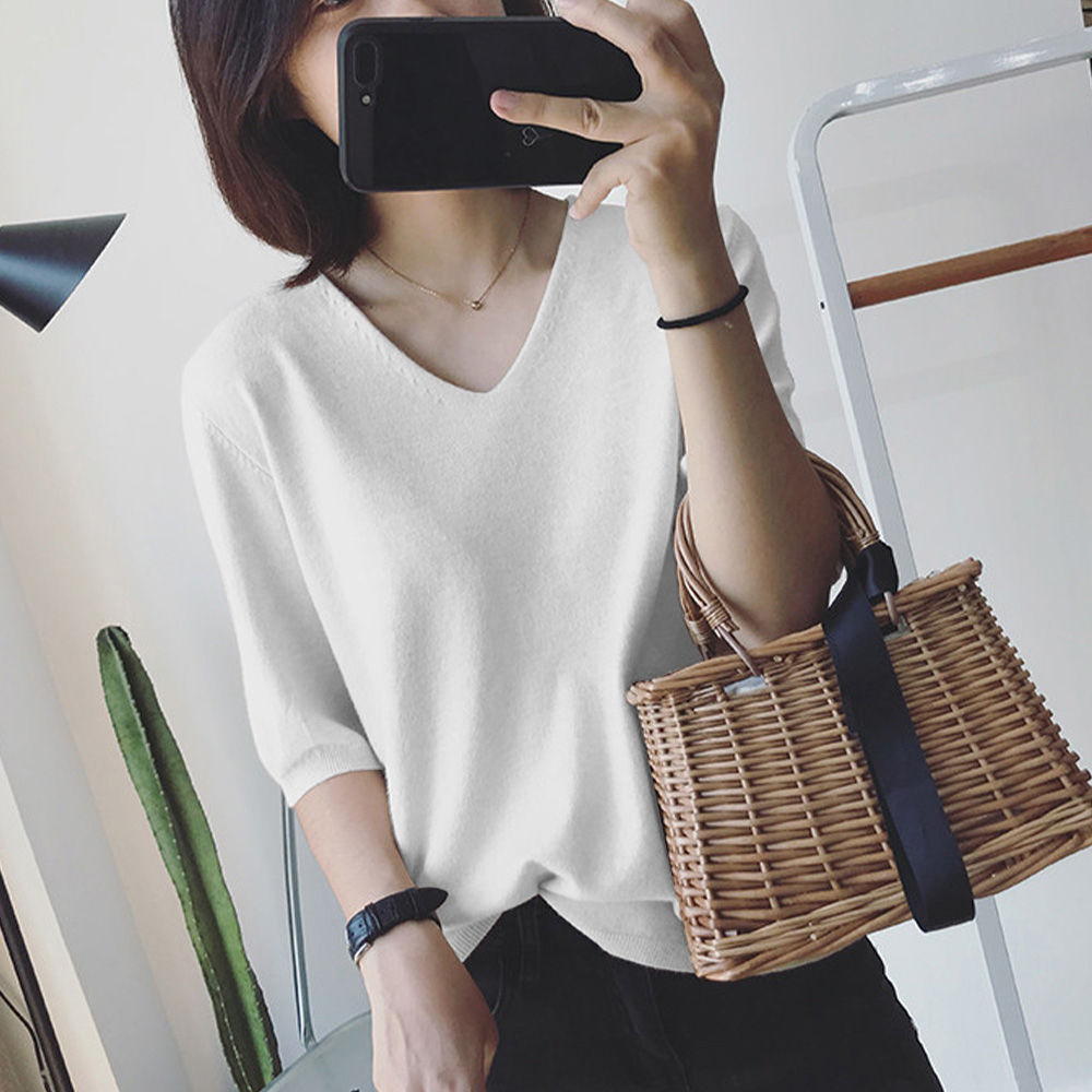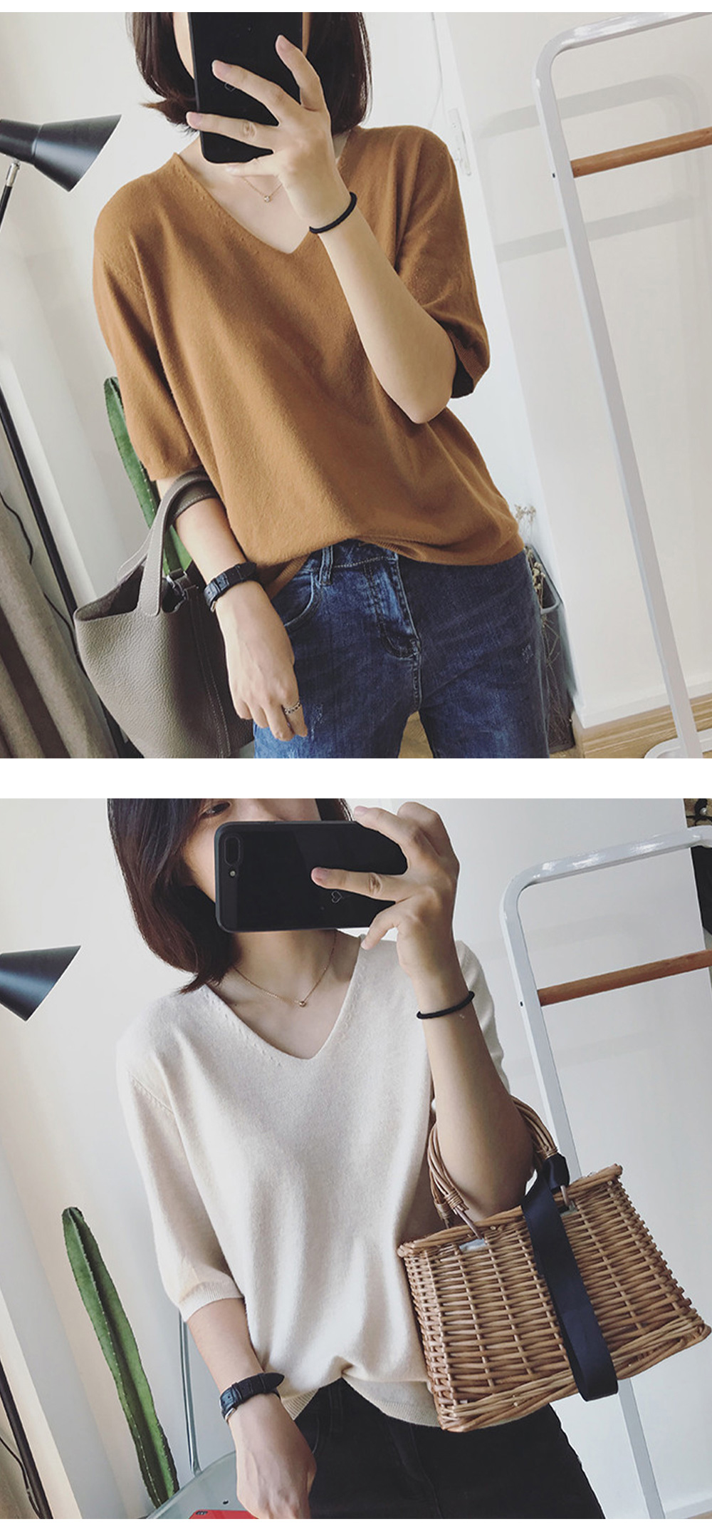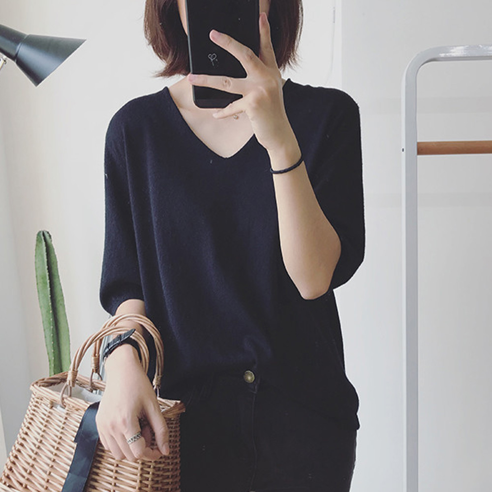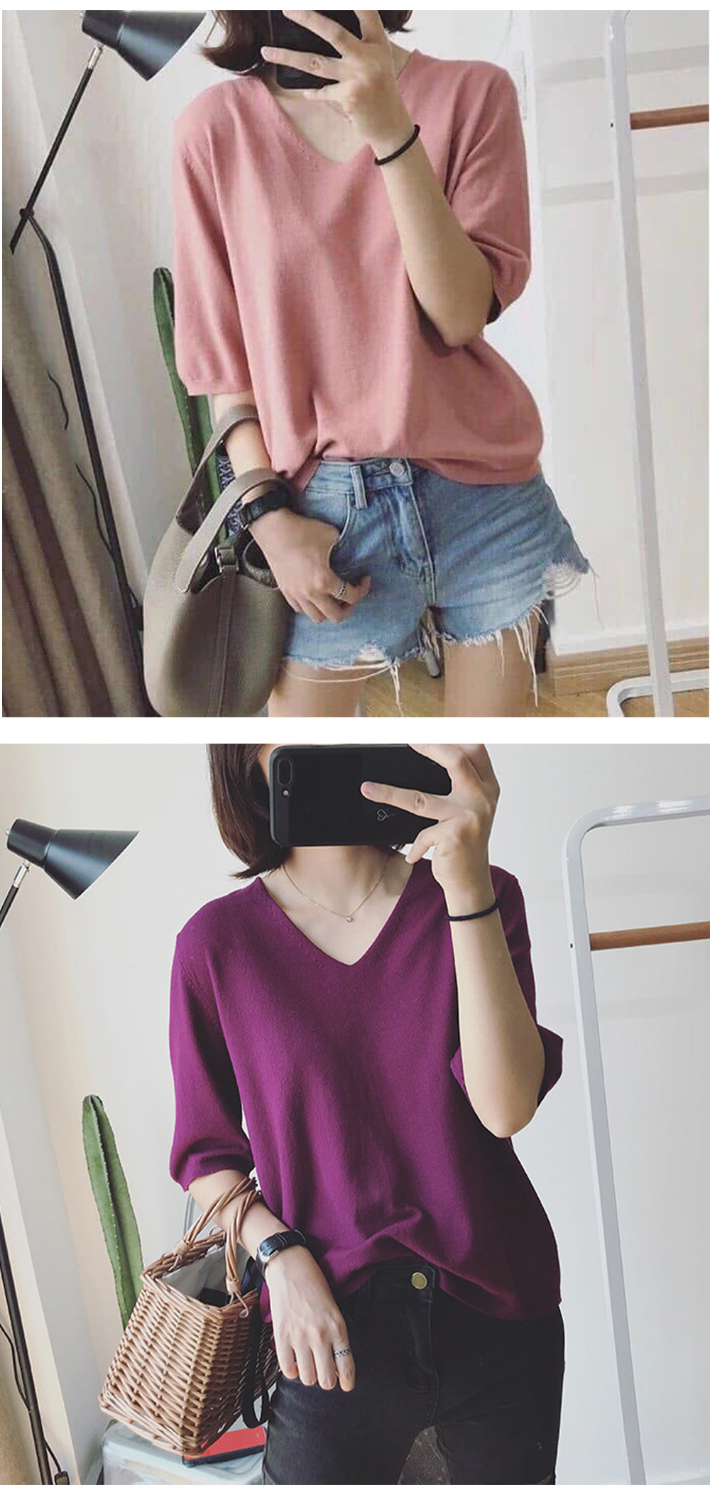 ニット 半袖 サマーニット レディース 春 夏 ニット トップス 薄手 プルオーバー Vネック カジュアル フェミニン ベーシック 無地 着回し 愛い 春 春夏 夏 送料無料