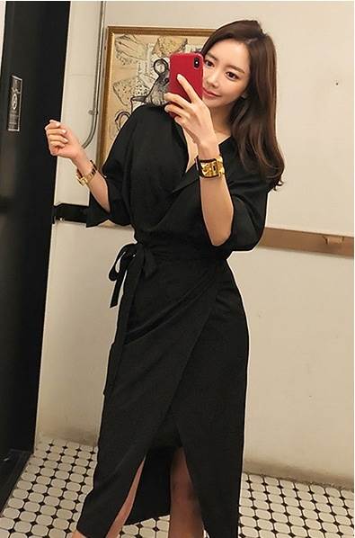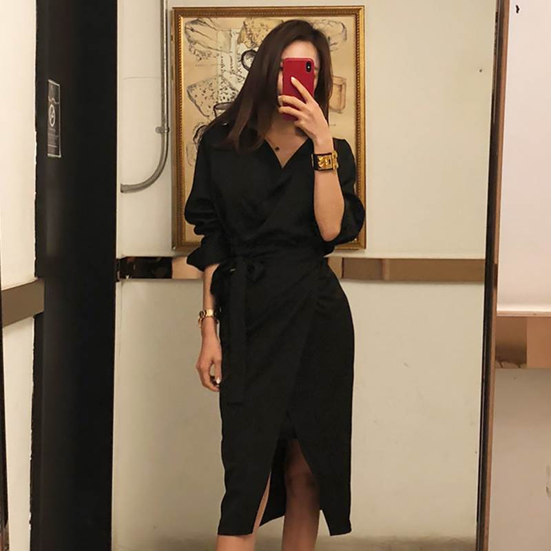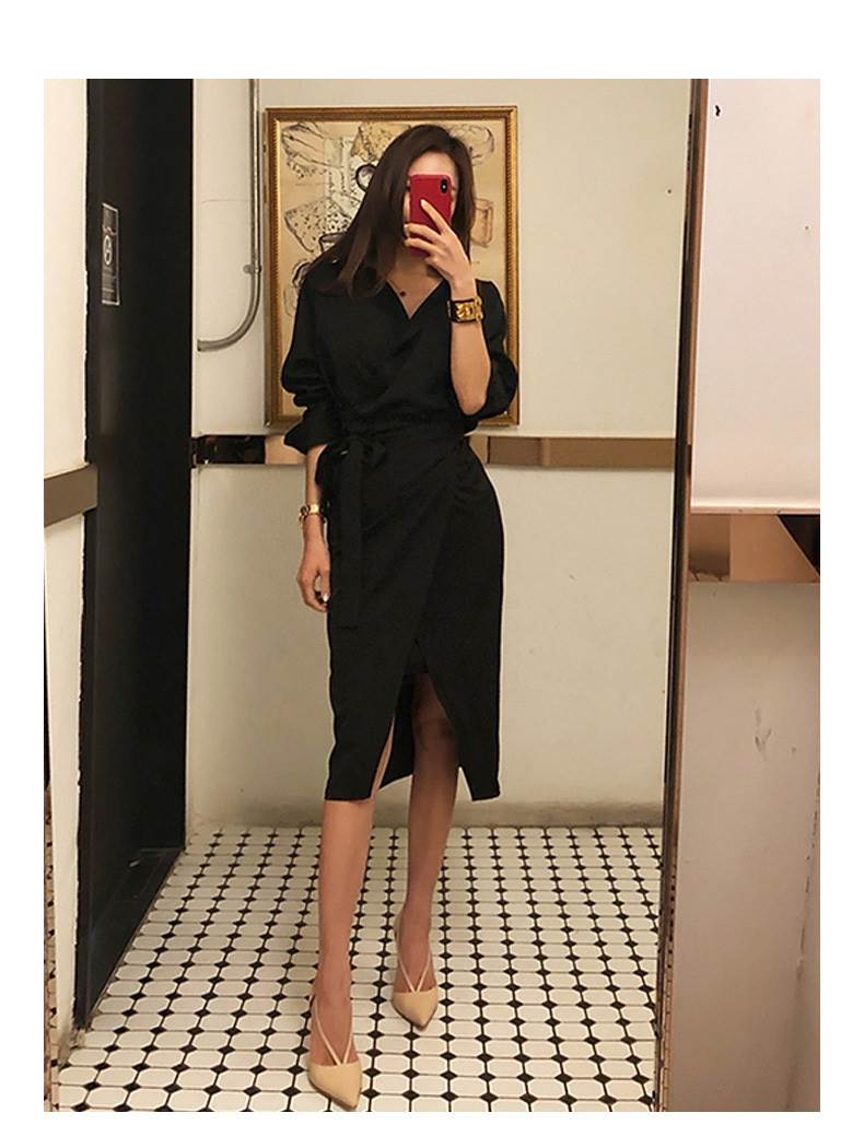 ドレス レディース ワンピース ミドル丈 スカート 二次会 パーティー お呼ばれ お食事会 デート 女子会 謝恩会 買い物 ショッピング 参観日 発表会 エレガント 美シルエット 個性 個性派ドレス 可愛い スタイルアップ スリム OL 通勤 オフィス 春 秋 長袖 ウエスト スーツ 無地 10代 20代 30代 ハイウエスト ジッパー プレーン シンプル ウエストベルト ドレススカート Vネック ブラック 黒