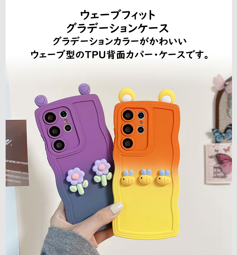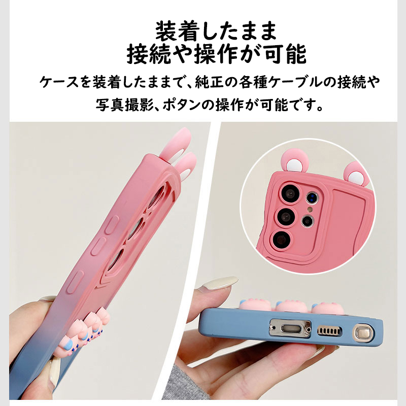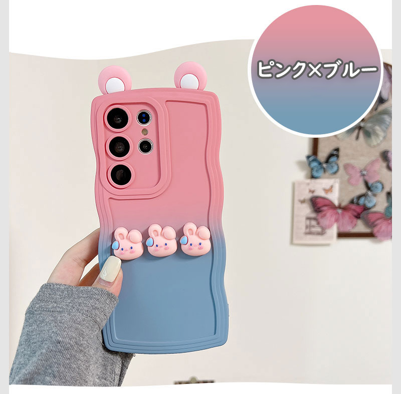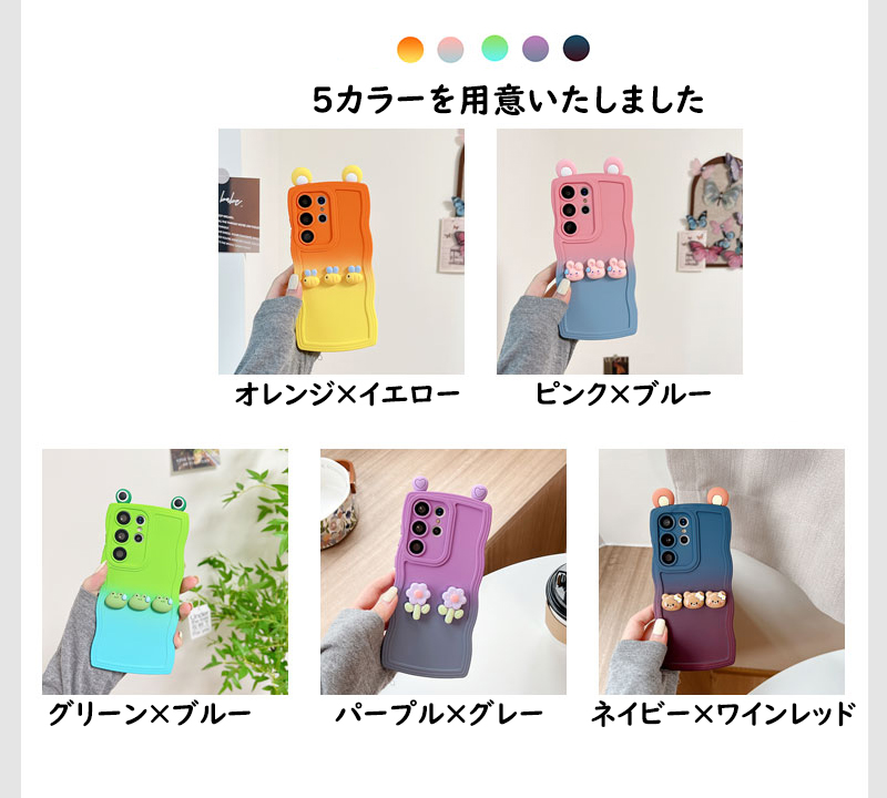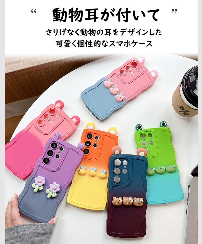 Galaxy S24 S24+ S24 Ultra Galaxy S23 FE S23 S23 Ultra Galaxy S22 S22 Ultra Galaxy S21 Galaxy A54 5G A53 5G A52 5Gスマホケース ギャラクシー カバー 韓国 可愛い おしゃれ 大人かわいい グラデーション ソフトケース 耐衝撃 ウェーブフィット背面ケース 持ちやすいケース 動物耳