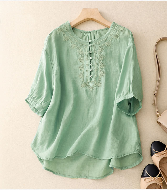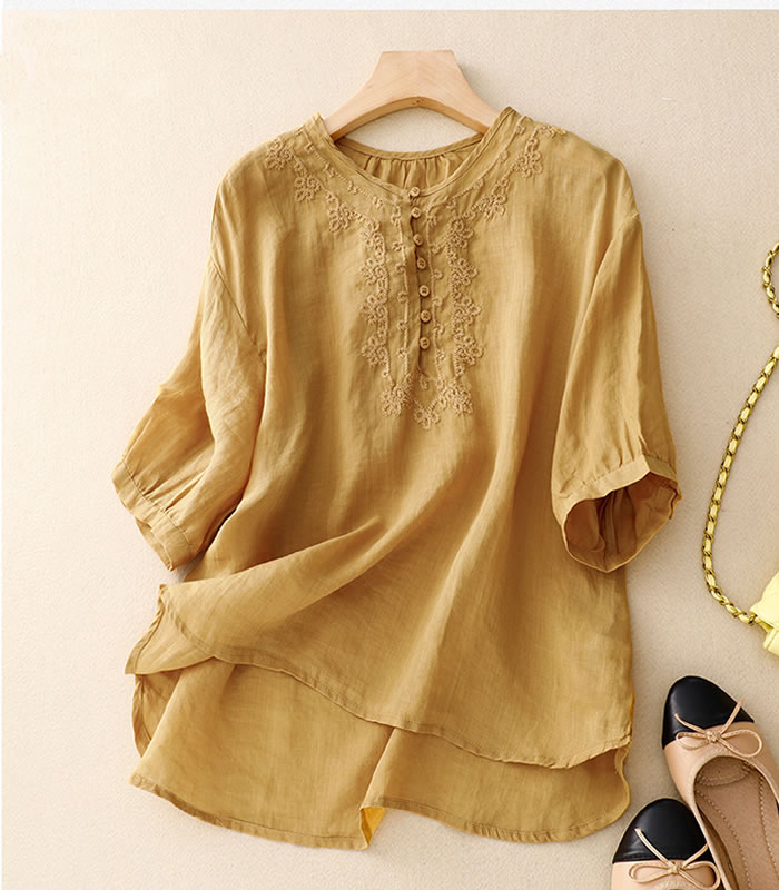 レディースシャツ 春夏シャツ 半袖シャツ 新作シャツ夏 リネンシャツ秋 綿麻シャツ秋 チュニックシャツ 秋シャツ レディースブラウス夏 リネンブラウス 薄手シャツ きれいめ 大人 可愛い お出かけ 通気性良い ゆったり 体型カバー