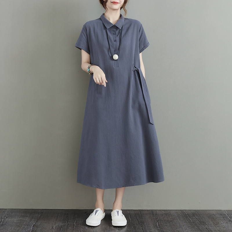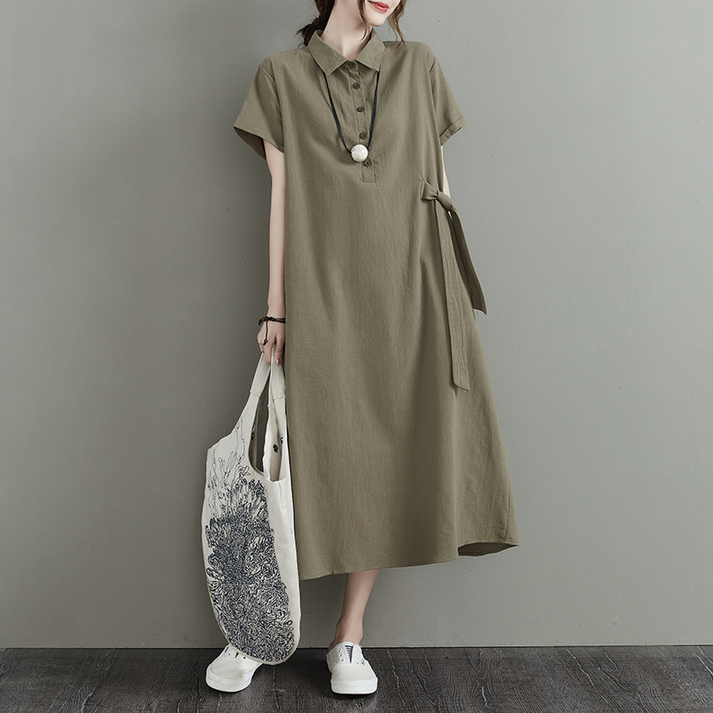綿麻ワンピース ワンピース 着痩せワンピース リネンドレス ドレス レディース 半袖 綿麻 リネン混ワンピース リネン混 ミモレ丈 ポケット付き 柔らかい ゆったり シンプル 無地 おしゃれ カジュアル ナチュラル 春夏 大きいサイズ