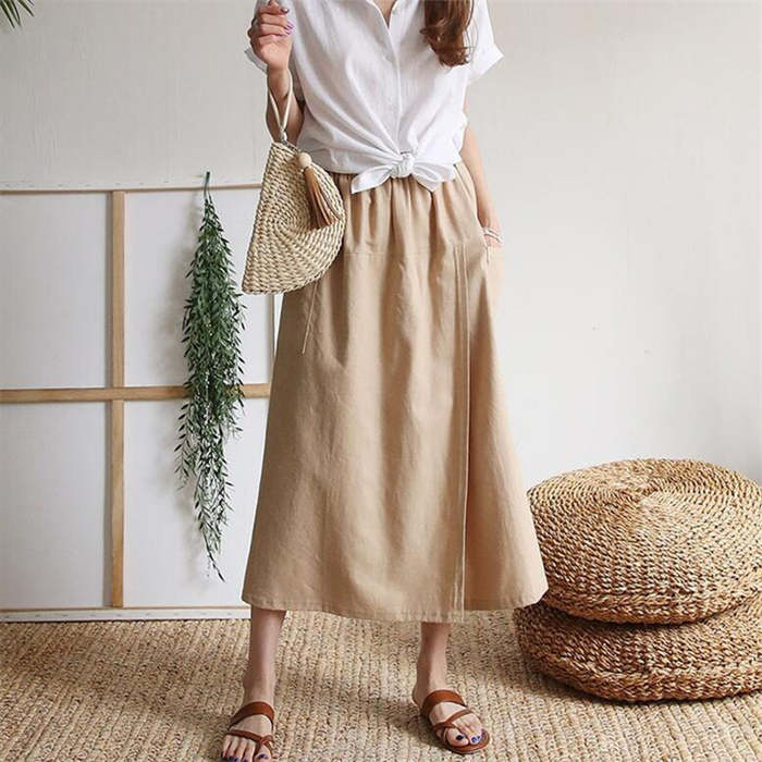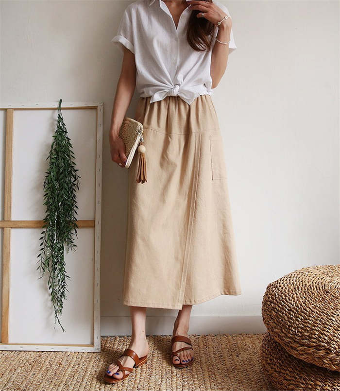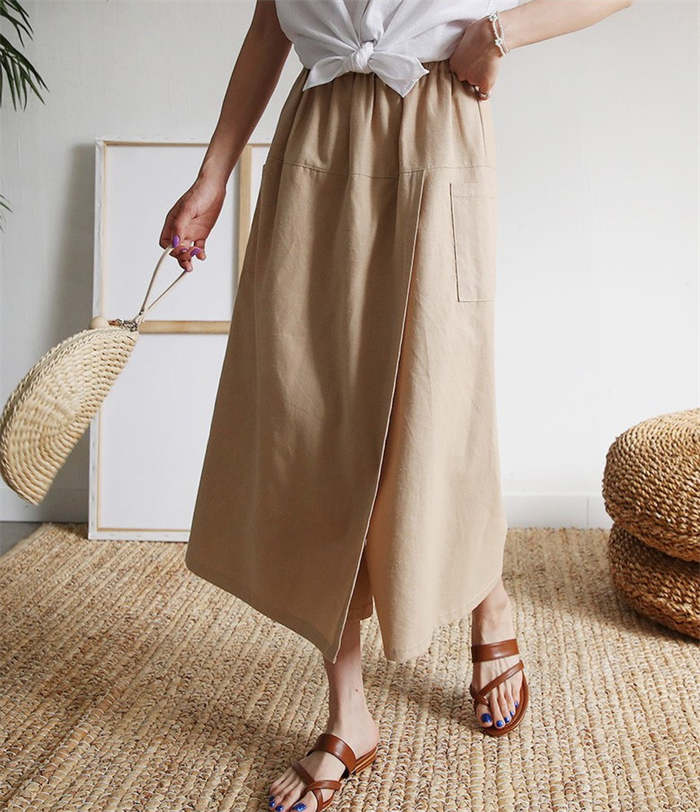 前から見ると巻きスカートのように見える