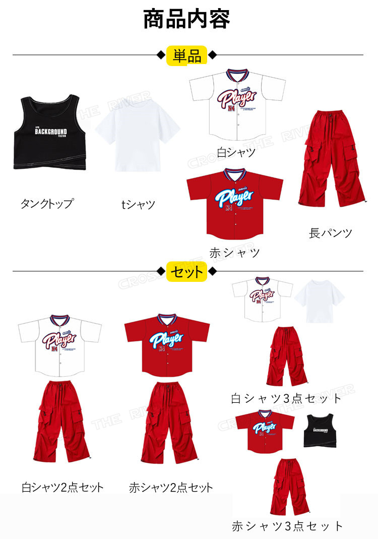 horizontal-key: タンクトップ tシャツ 白シャツ 赤シャツ 長パンツ 白シャツ2点セット 赤シャツ2点セット 白シャツ3点セット 赤シャツ3点セット