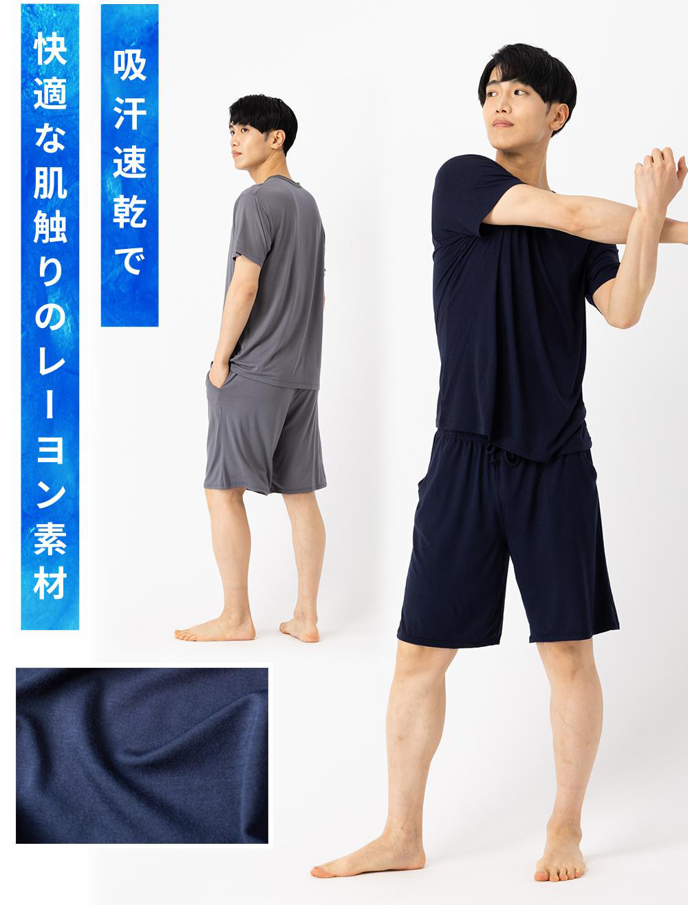 上下セット 夏用 パジャマ メンズ 半袖 半ズボン 冷感 シンプル おしゃれ パジャマセット 上下 寝巻き 部屋着 ナイトウェア メンズパジャマ