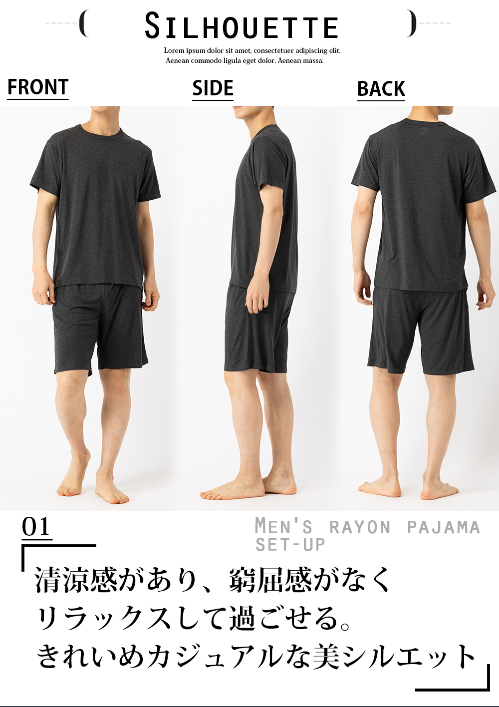 ・【極上の着心地】吸湿性が高く、心地良い肌触りが特徴のレーヨン生地で仕上げたパジャマ。静電気が起きにくく、汗をかいても素早く吸収して早く乾くので暑い季節にも嬉しい一着です。