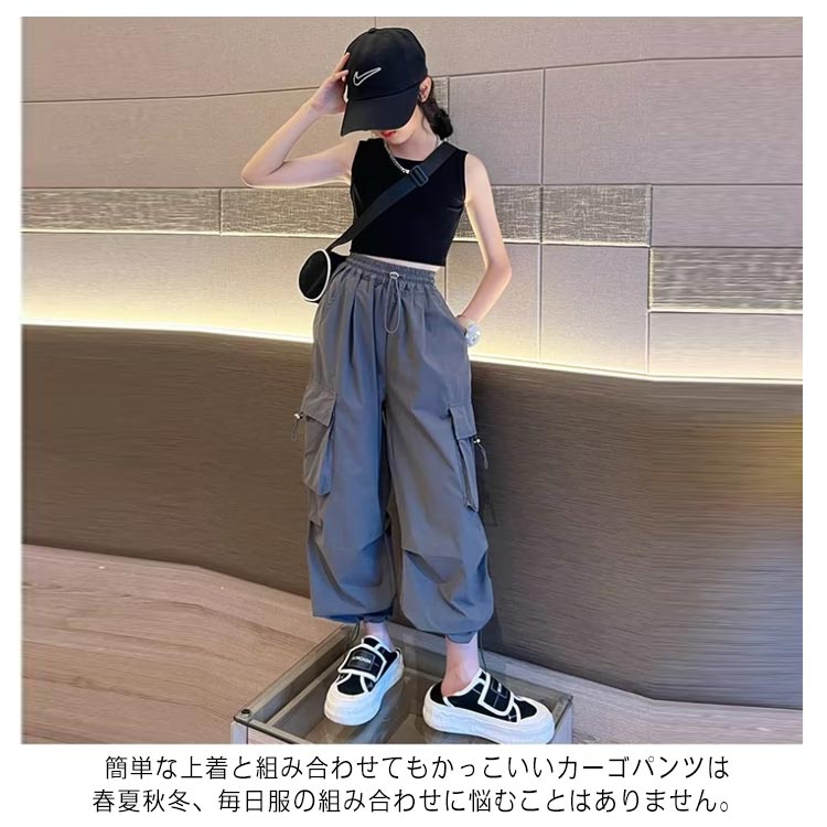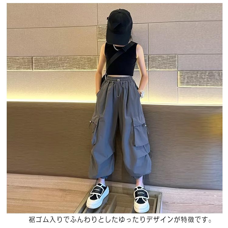 キッズ カーゴパンツ 子供服 ロングパンツ ウエストゴム 裾ゴム ワイドパンツ 女の子 ダンス 衣装 ボトムス ダンスウェア 練習着 子ども ジュニア ヒップホップ ストリート k-pop hiphop 長ズボン ゆったり 無地 カジュアル 韓国ファッション 120-170cm