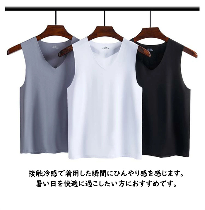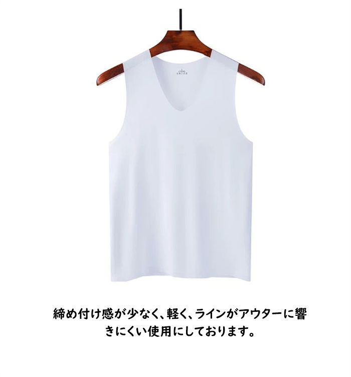トップス メンズ Vネック シームレス 接触冷感 ンナーシャツ 吸汗速乾 肌着 ノースリーブ 通気 ひんやり 重ね着 カジュアル 春夏 夏用 涼しい レイヤード 速乾