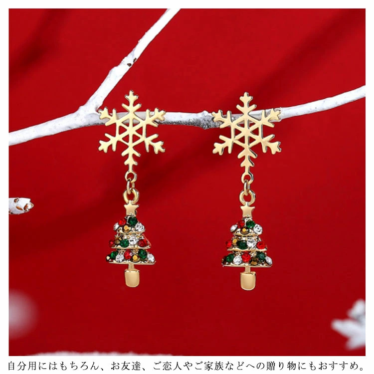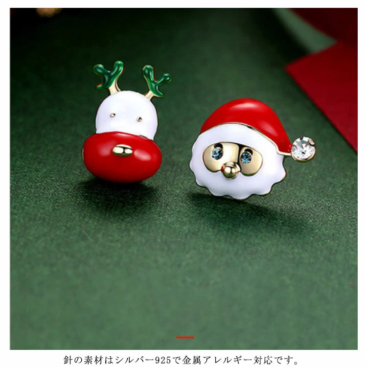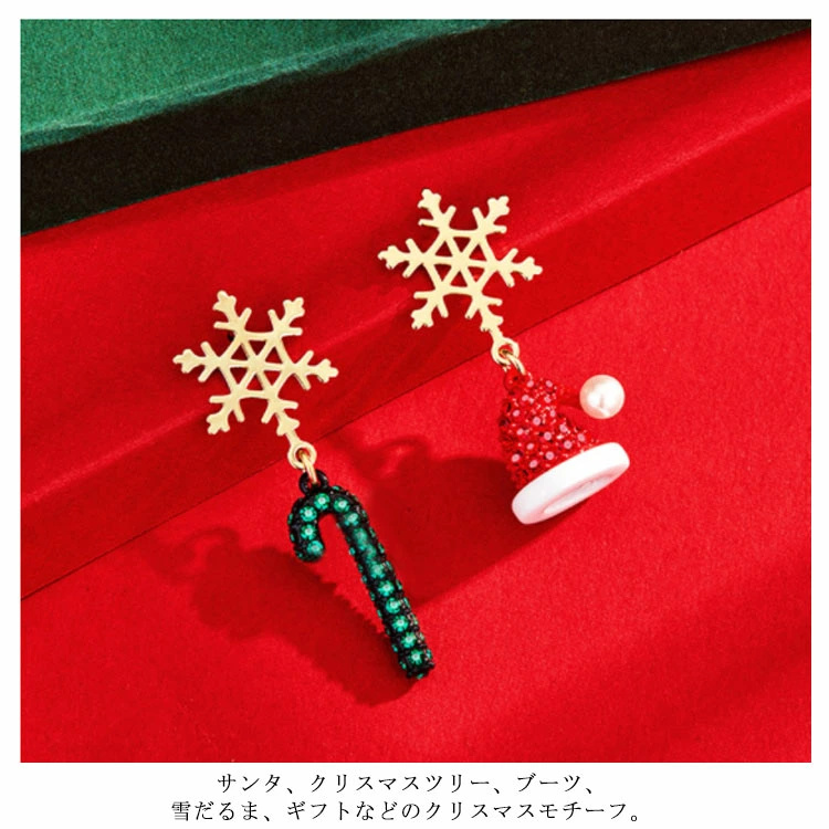 ピアス アシンメトリー 可愛い シルバーS925針 レディース クリスマス ピアス リボン サンタクロース 雪だるま 雪の結晶 クリスマスツリー 贈り物 ギフト 金属アレルギー対応