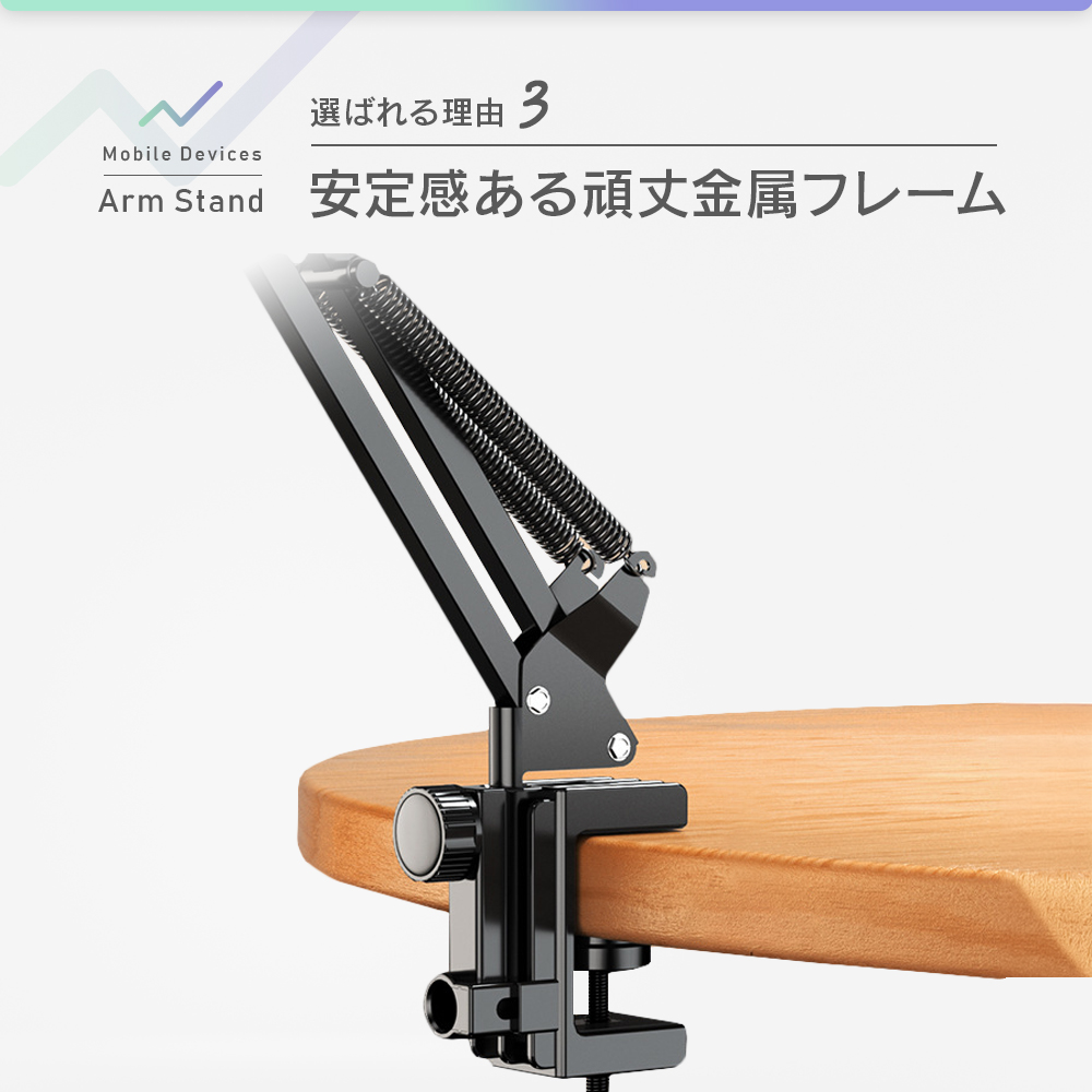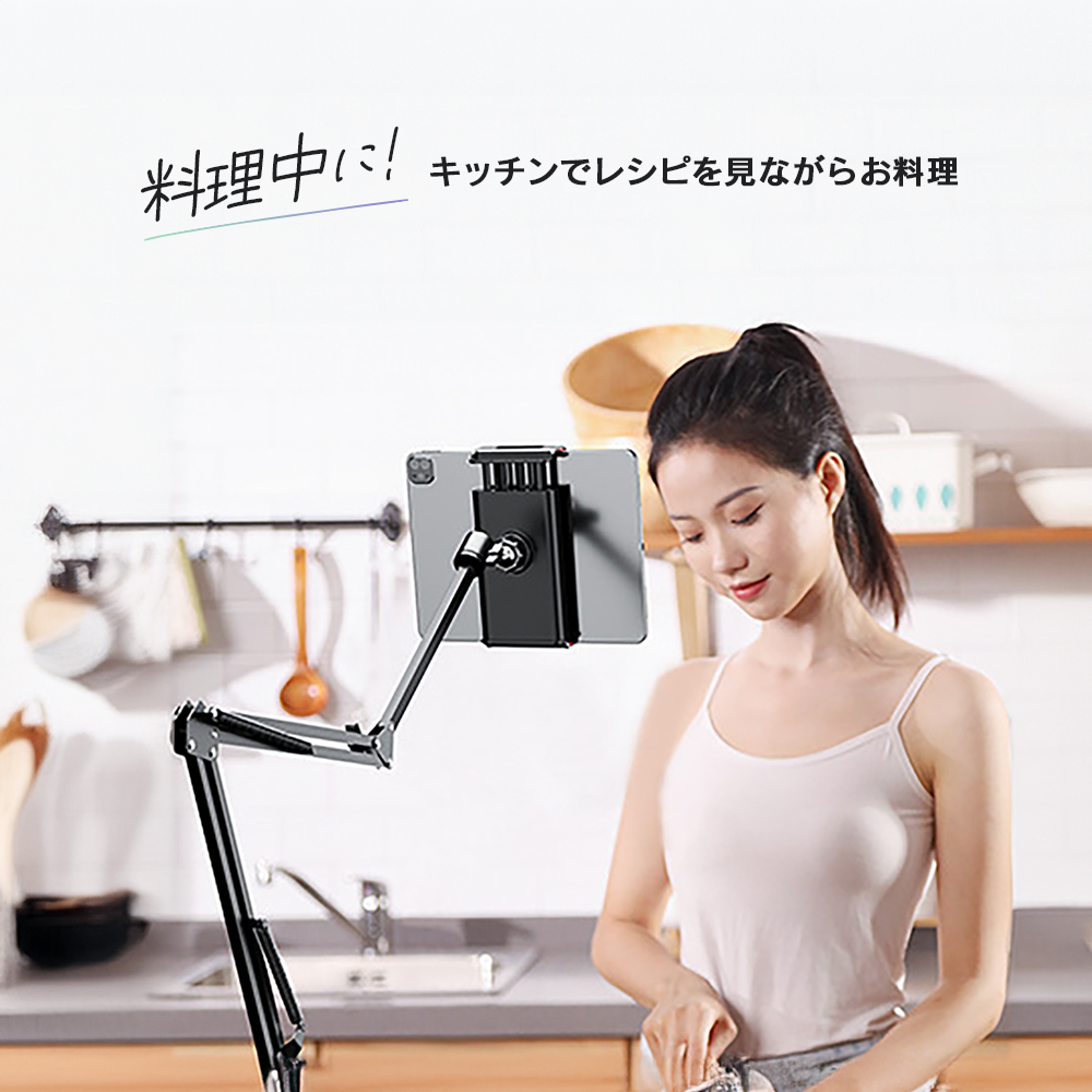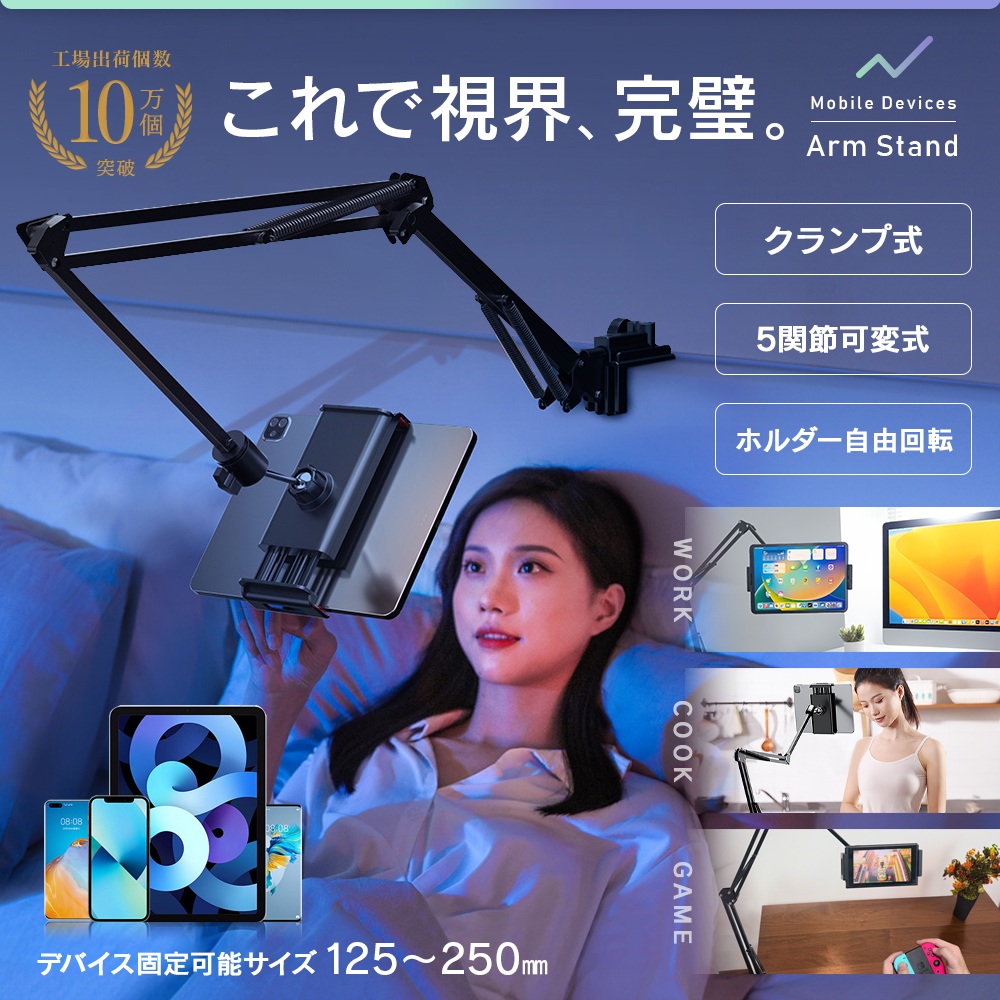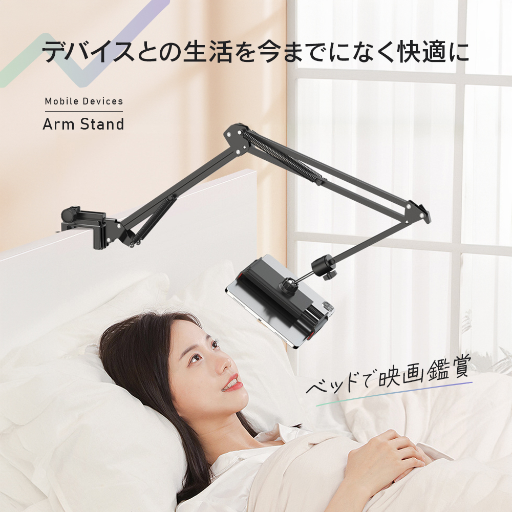 タブレットスタンド スマホスタンド タブレットアーム 携帯スタンド iPadスタンド 寝ながら ベッド用 テーブル用 ラック用 スマホ ホルダー 安定 揺れない iPad、Kindle