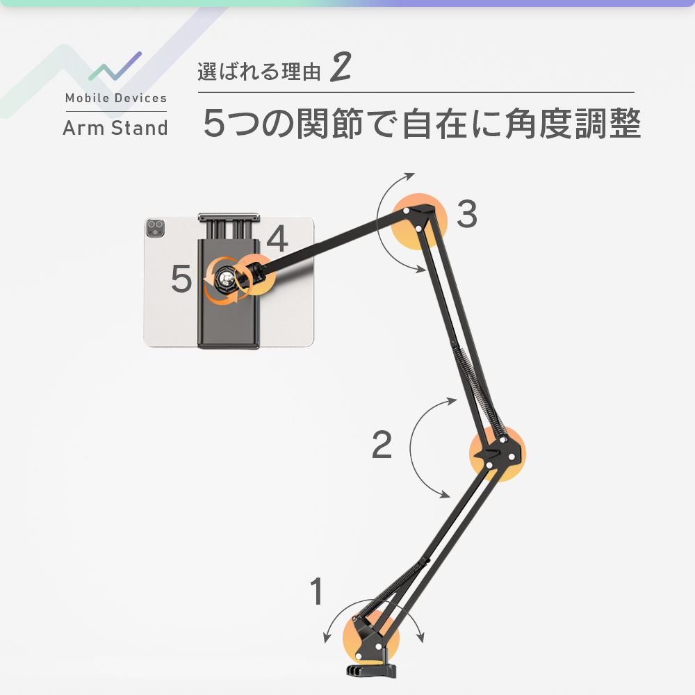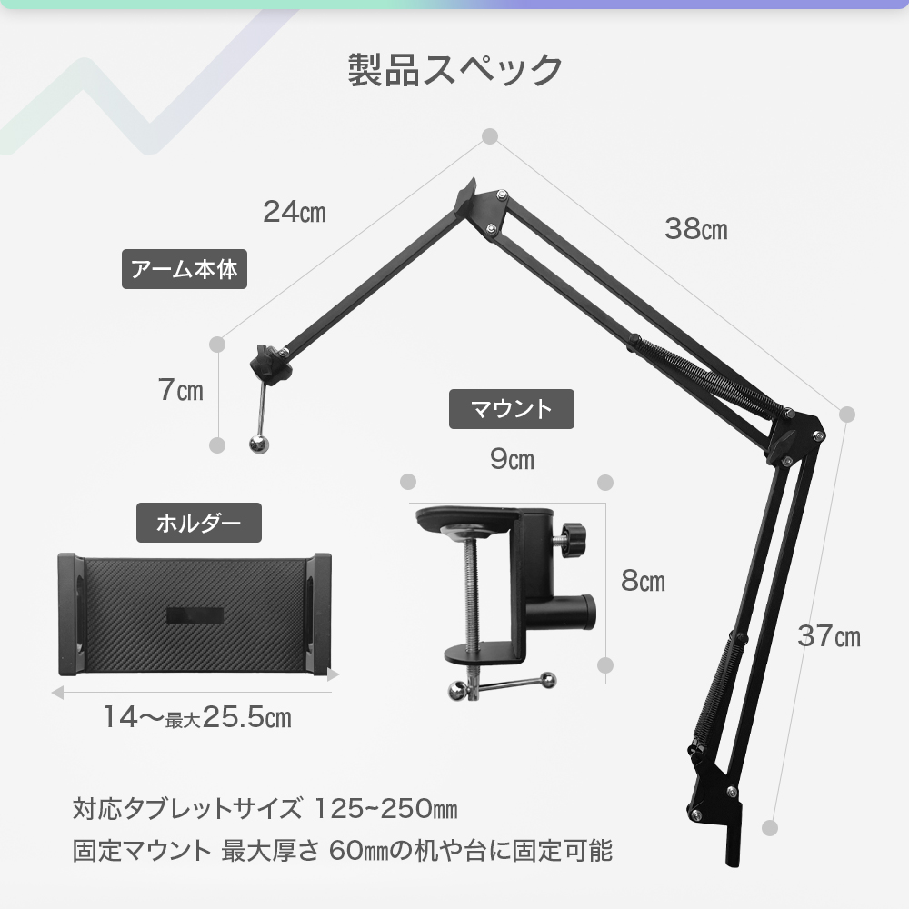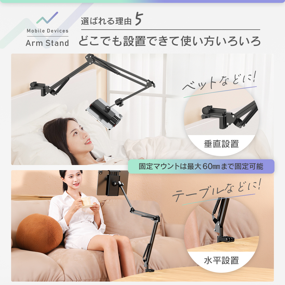 ・固定マウント: 最大厚さ60mmの机や台に固定可能タブレットスタンド, スマホスタンド, タブレットアーム, 携帯スタンド, iPadスタンド, アイパッドスタンド, アーム, 寝ながら, ベッド用, テーブル用, ラック用, スマホホルダー, 安定, 揺れない, iPad, Kindle Fire, Switch, android, iPhone, スマホタブレット対応, 5つの関節, ホルダー回転