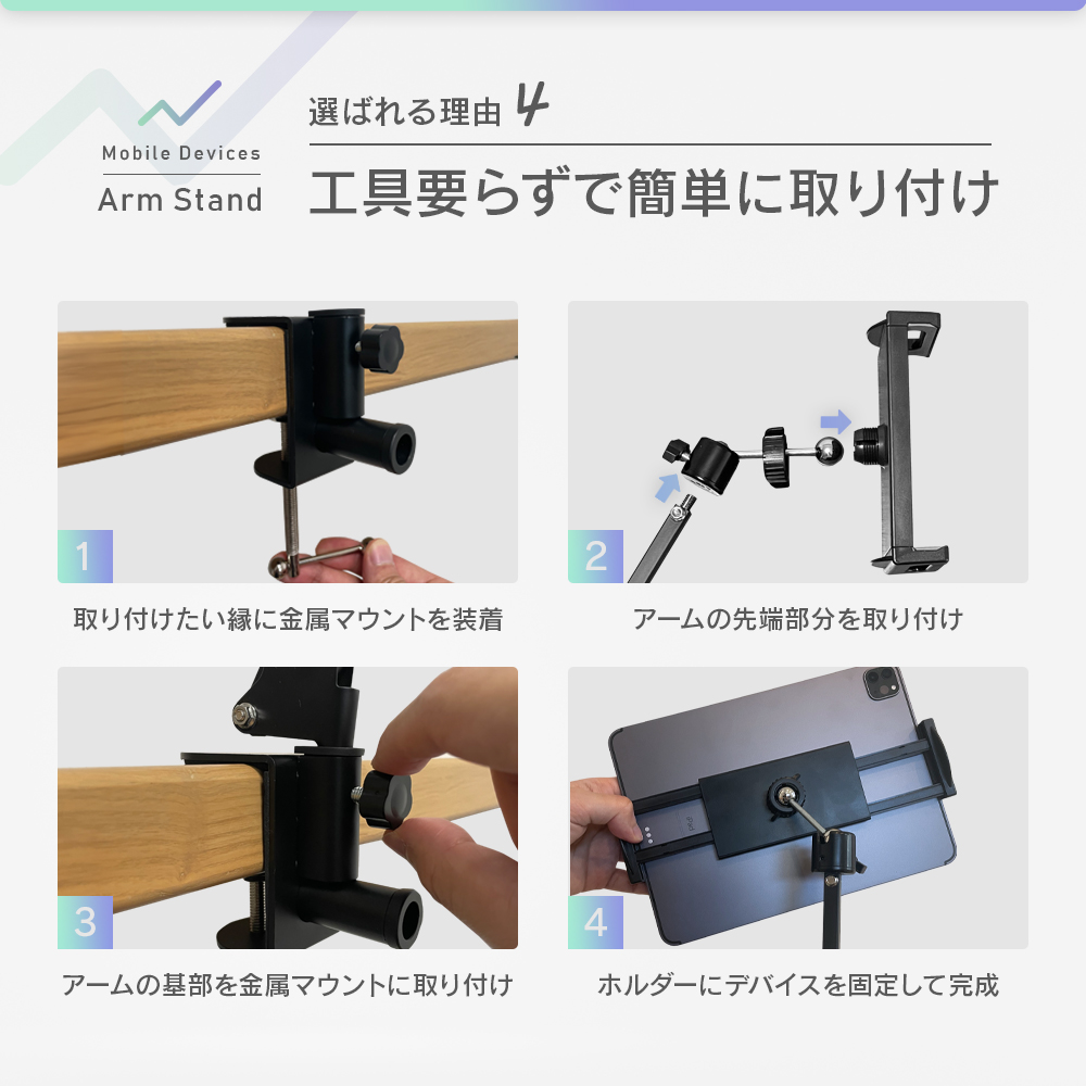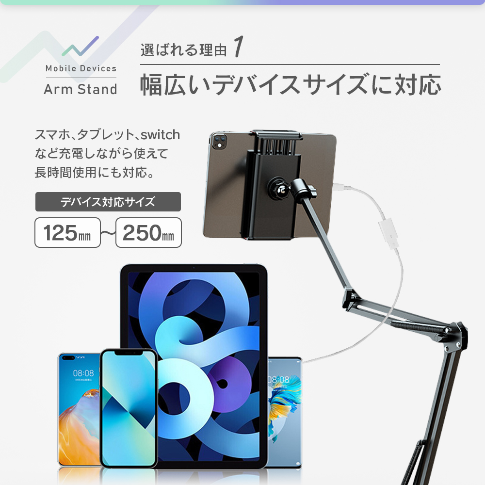 4. PCのサブモニター固定: 作業効率アップのためのサブモニターとして利用可能。選ばれる理由1. 幅広いデバイスサイズに対応