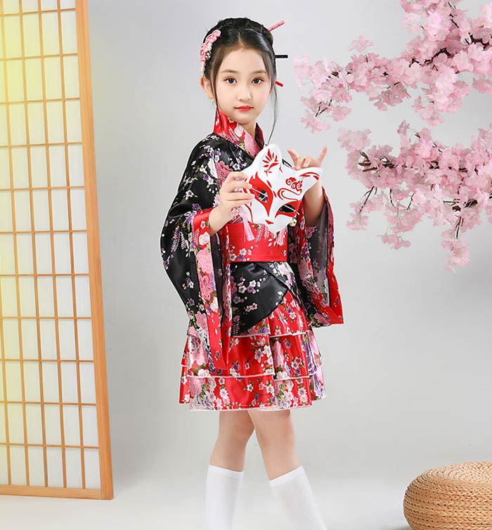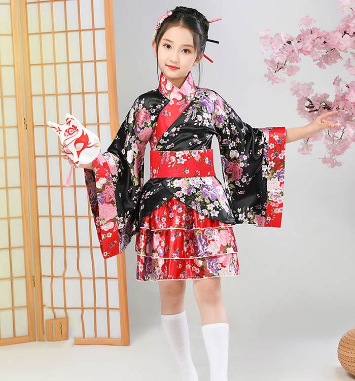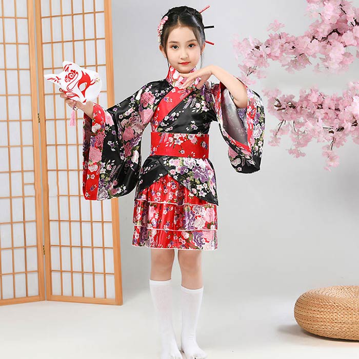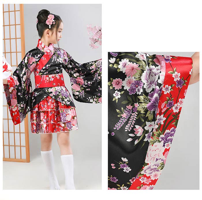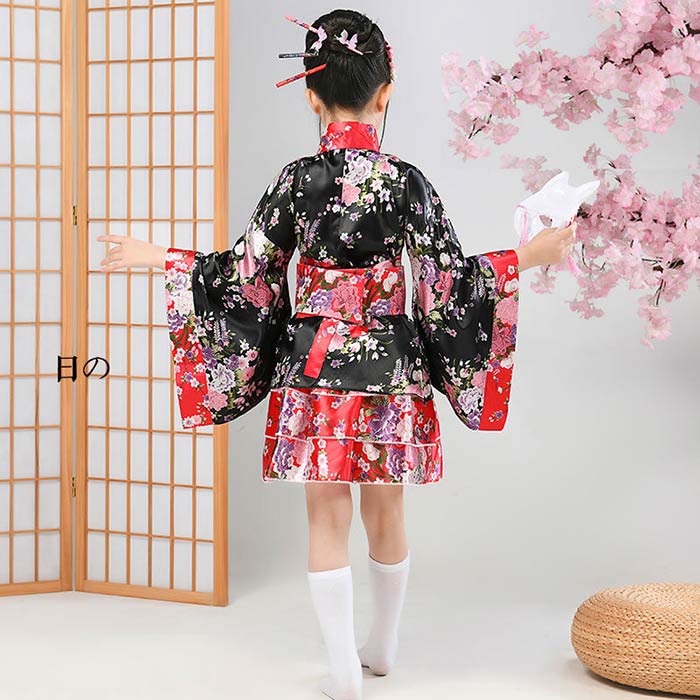 和柄 着物 ドレス 子供 プリーツ スカート 和風 ミニ 着物ドレス 和装 コスプレ コスプレ 衣装 キッズ コスチューム パーティ 子供用 コスプレ衣装 子ども こども 子供服 着物 和服 ミニ浴衣 ミニ着物 ガールズ ジュニア 女児 可愛い 衣装 仮装 ステージ衣装 黒