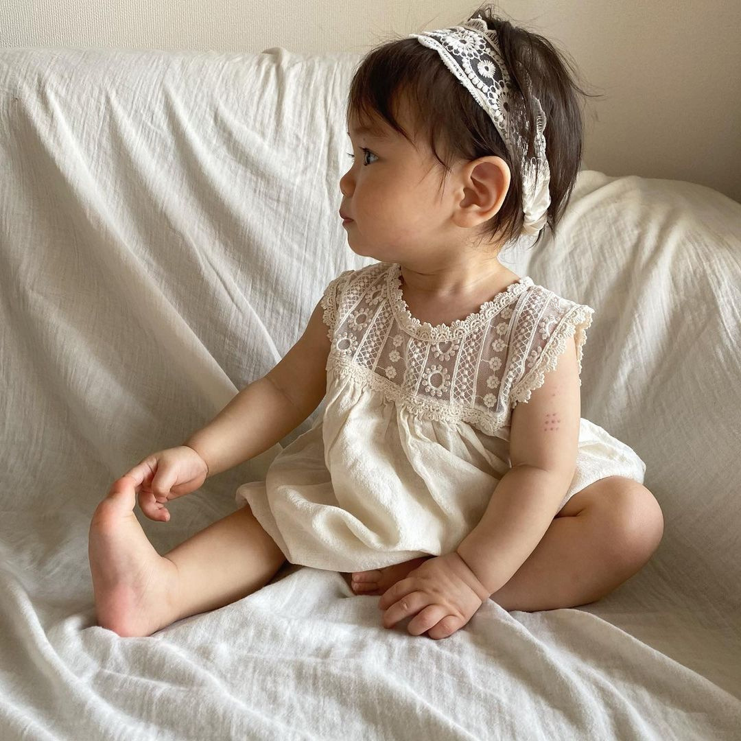 ロンパース ベビー服 60 70 80 新生児 赤ちゃん 夏服 半袖 ノースリーブ 女の子 男の子 子供 子供服 子ども 春 夏 秋 冬 出産祝い フラワーレース ヘアバンド セット 新生児 乳幼児 出産祝い コットン リネン