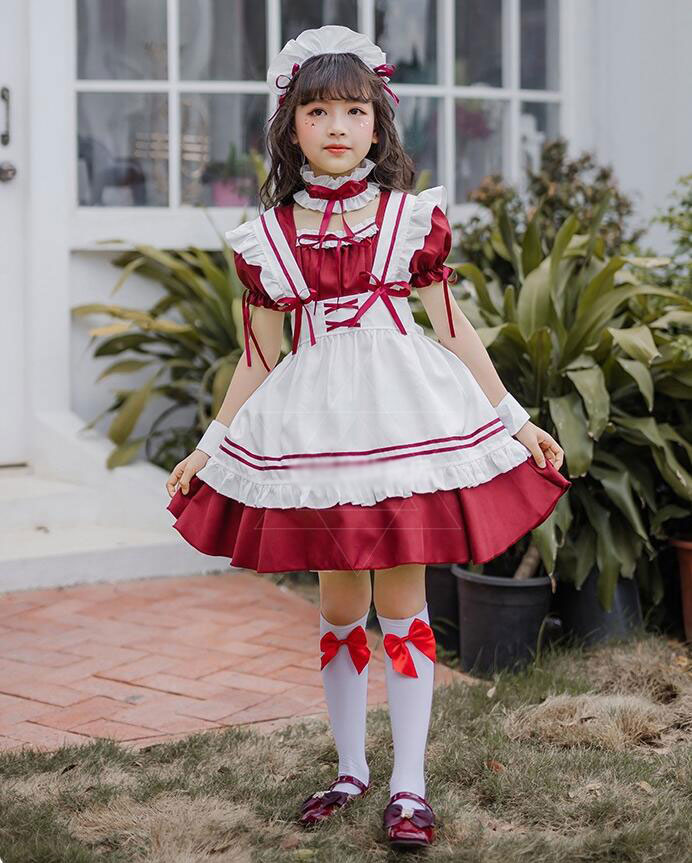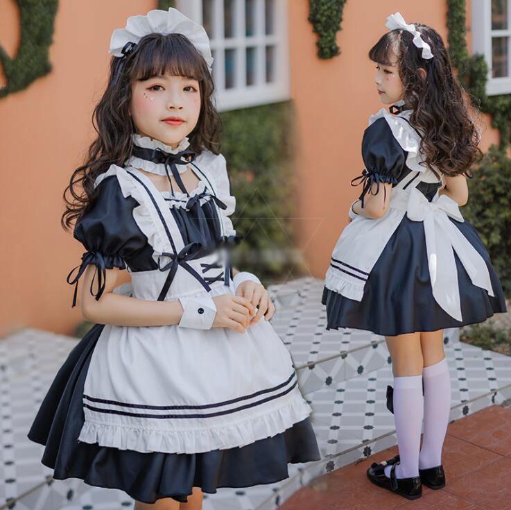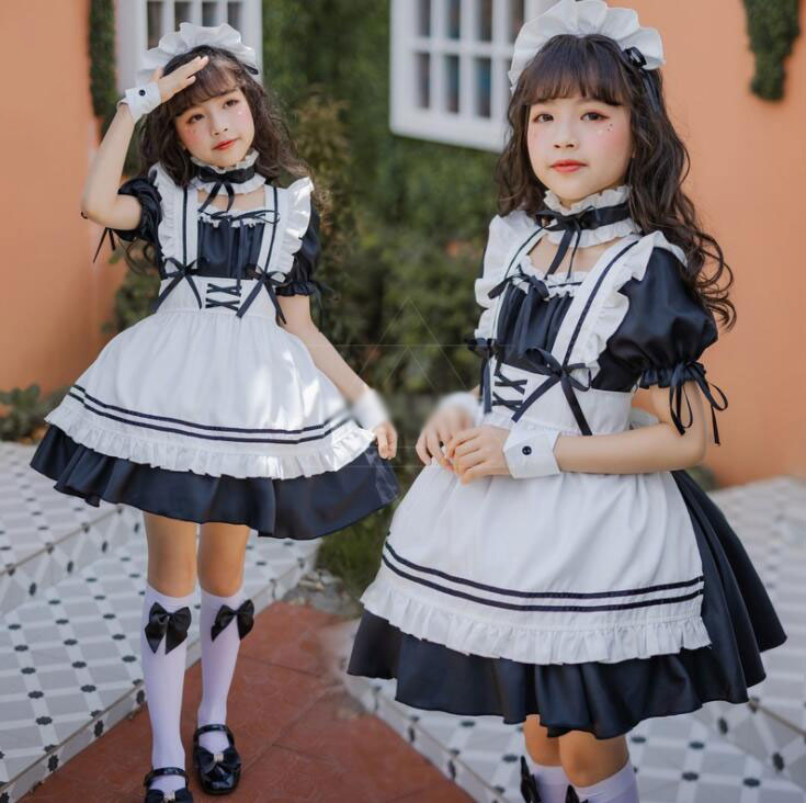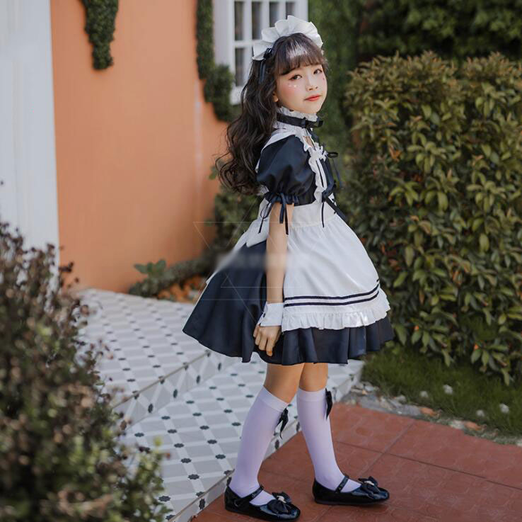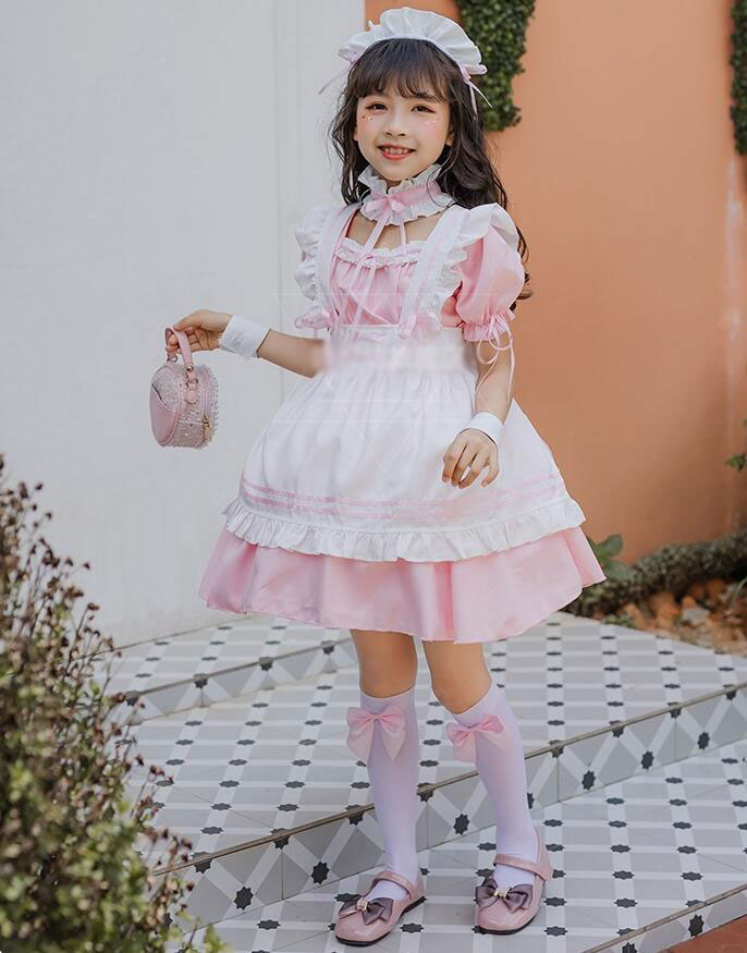 子どもワンピース 女の子コスチューム キッズ半袖ワンピ 子供メイド服 メイドコスプレ 定番 可愛いコスチューム コスプレ衣装 ハロウィン衣装 パーティー 学園祭 かわいい 萌え イベント 110cm 120cm 130cm 140cm 150cm 5点 4色