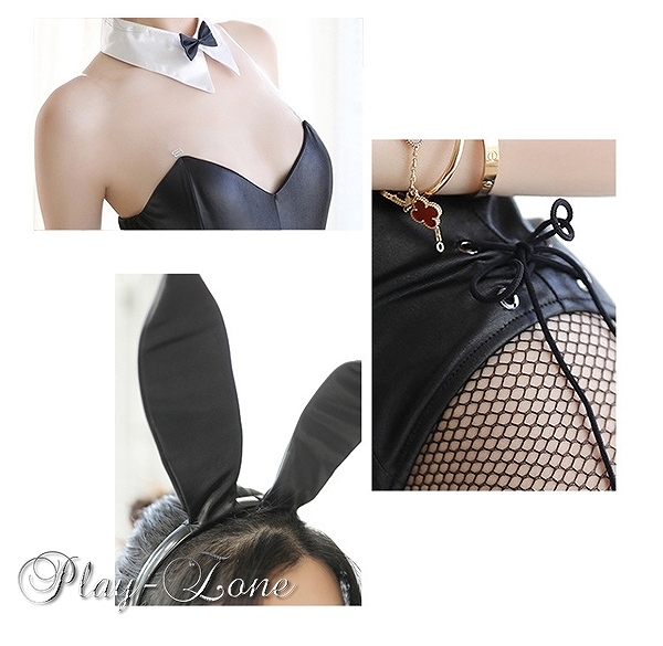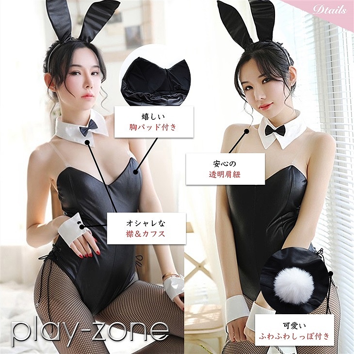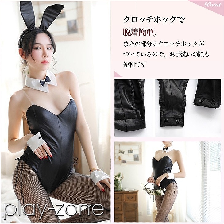 ■高級感抜群!光沢フェイクレザーの可愛いくてお洒落なバニーガールコスプレ衣装6点セットです。注意書き ※セット内容に記載のない物は付属しません。