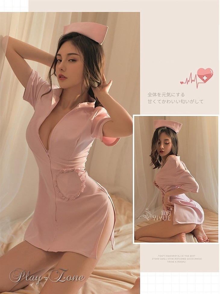 ■悩ましいリアル看護婦の制服コスチューム!両サイドにハイスリット入りでセクシーなナースコスプレ衣装4点セットです。注意書き ※セット内容に記載のない物は付属しません。