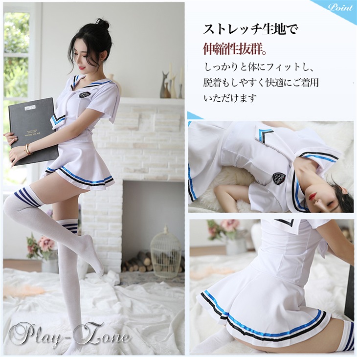 【スクールソックス付】 女学生 制服 コスプレ セット かわいい 学生服 仮装 レースクイーン セクシーコスチューム セーラー服 ワンピース セクシーコスプレ
