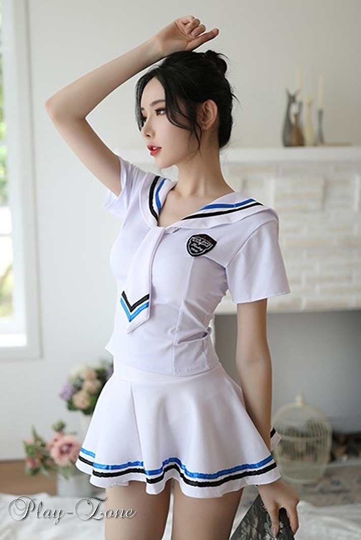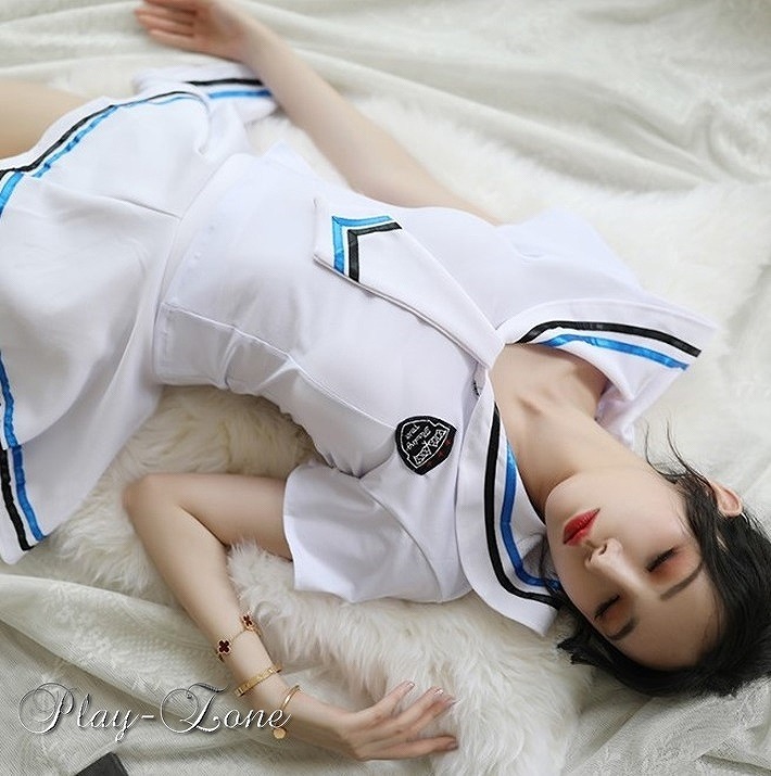■爽快感あるブルーラインのセーラー服!学生服やレースクイーンなどの仮装に最適なコスプレ衣装4点セットです。注意書き ※セット内容に記載のない物は付属しません。