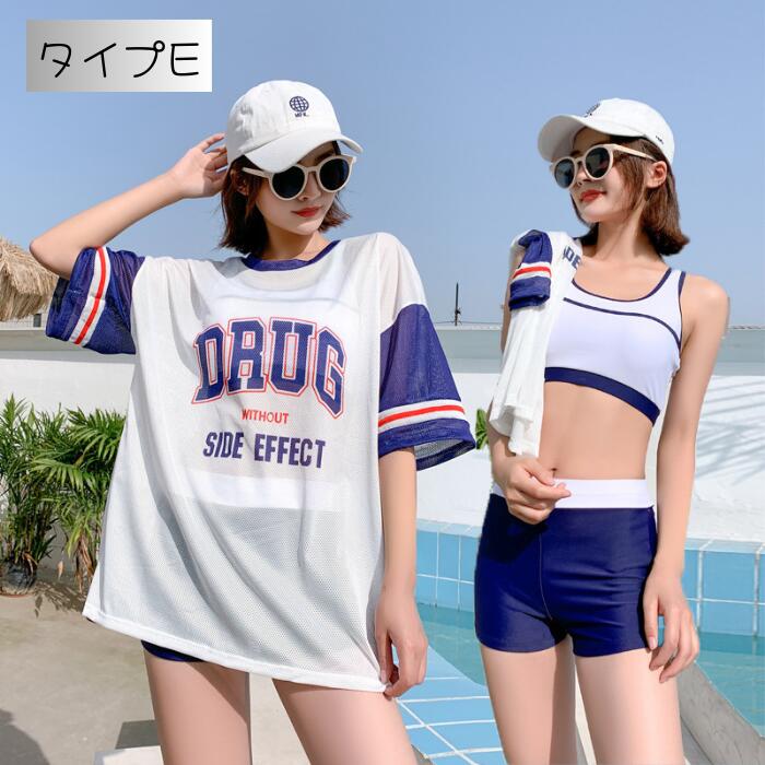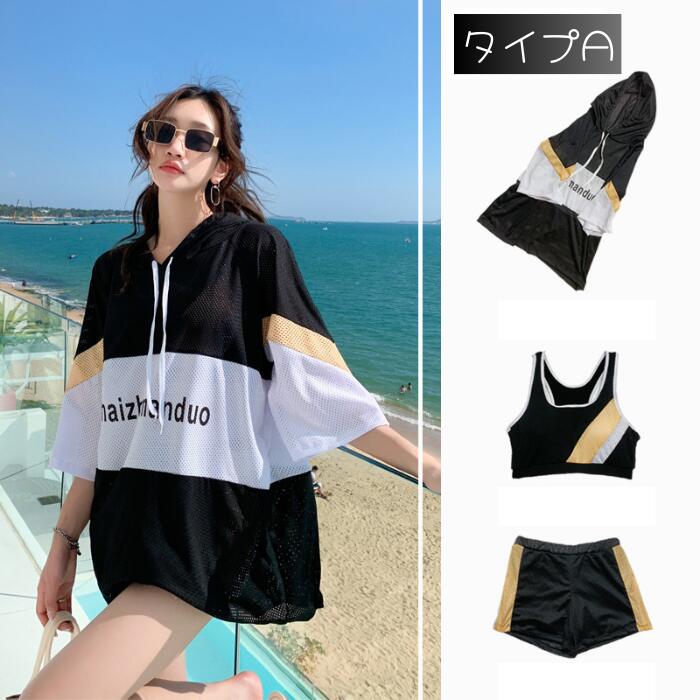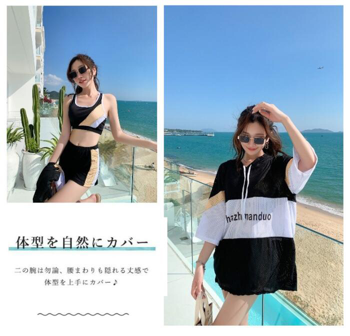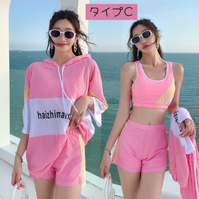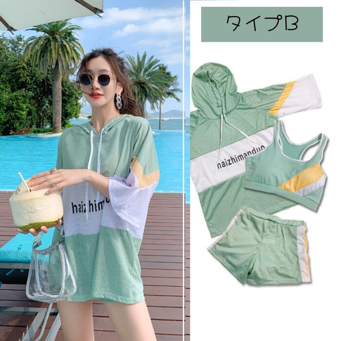水着 レディース 3点セット 体型カバー おしゃれ かわいい 韓国風 女の子 海 プール フィットネス水着 ラッシュガード 上下セット 高校生 中学生 10代 20代 30代
