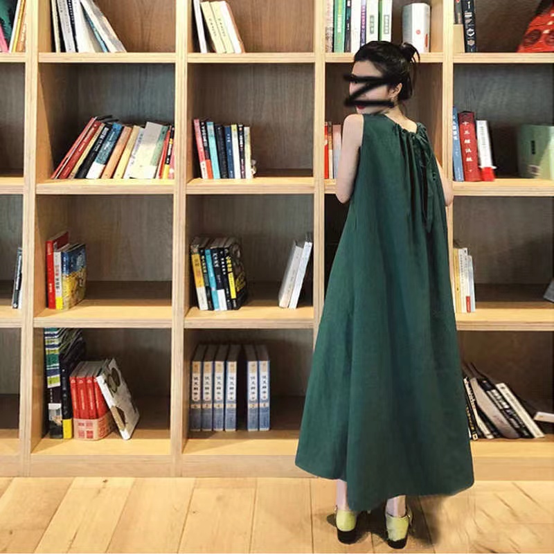 ロングワンピース レディース 春夏 ゆったり ノースリーブ 大人可愛い 夏ワンピース ゆったりワンピース 春夏ワンピース aラインワンピース aライン ノースリワンピ ノースリーブワンピース 可愛い 無地 緑 グリーン 大人かわいい S M L