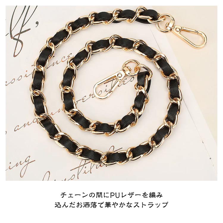 ショルダーストラップ バッグ用 ショルダーベルト チェーン のみ 単品 合皮 フェイクレザー レディース チェーンストラップ チェーンベルト 付け替え 交換用ストラップ ショルダー紐 肩掛け 斜め掛け 鞄 かばん 着せ替え 取り外し可能 無地 短め 長め 送料無料
