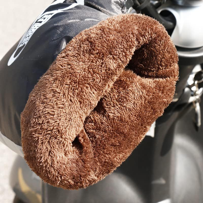 バイク 防水 ハンドルカバー スクーター 自転車 ハンドルウォーマー 防寒 汎用 保温 手袋 裏起毛 厚手 もこもこ 取り付け簡単 夜間反射テープ付き 防水カバー付き 左右セット (グレー,大きい口)