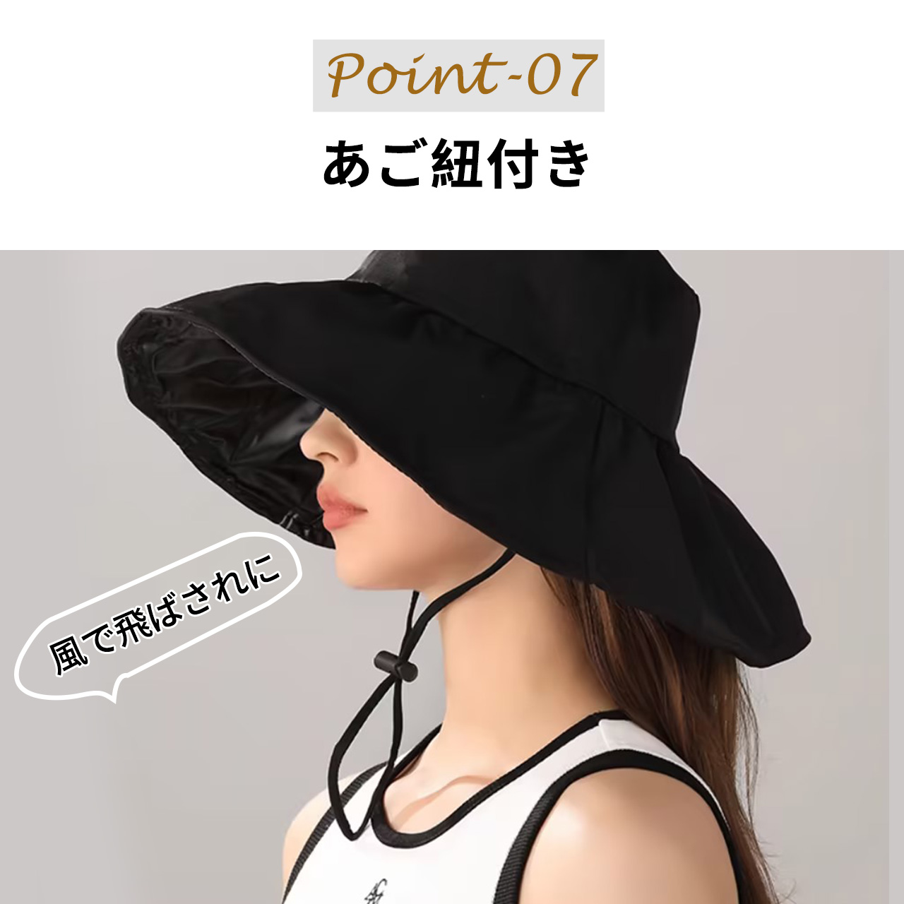 帽子の周りにはソフトワイヤーを加えて、ご自分の好みとスタイルに合わせて折り曲げ可能です。取り外し可能なあご紐が付き、あご紐の両端のホックを内側にあるループに引っ掛けるだけ、簡単に使用可能です。風が強い日や自転車にのる時にサイズ合わせて調整すれば風に吹き飛ぶ心配がない!風がない時、取り外すことができるから邪魔になることはありません。
